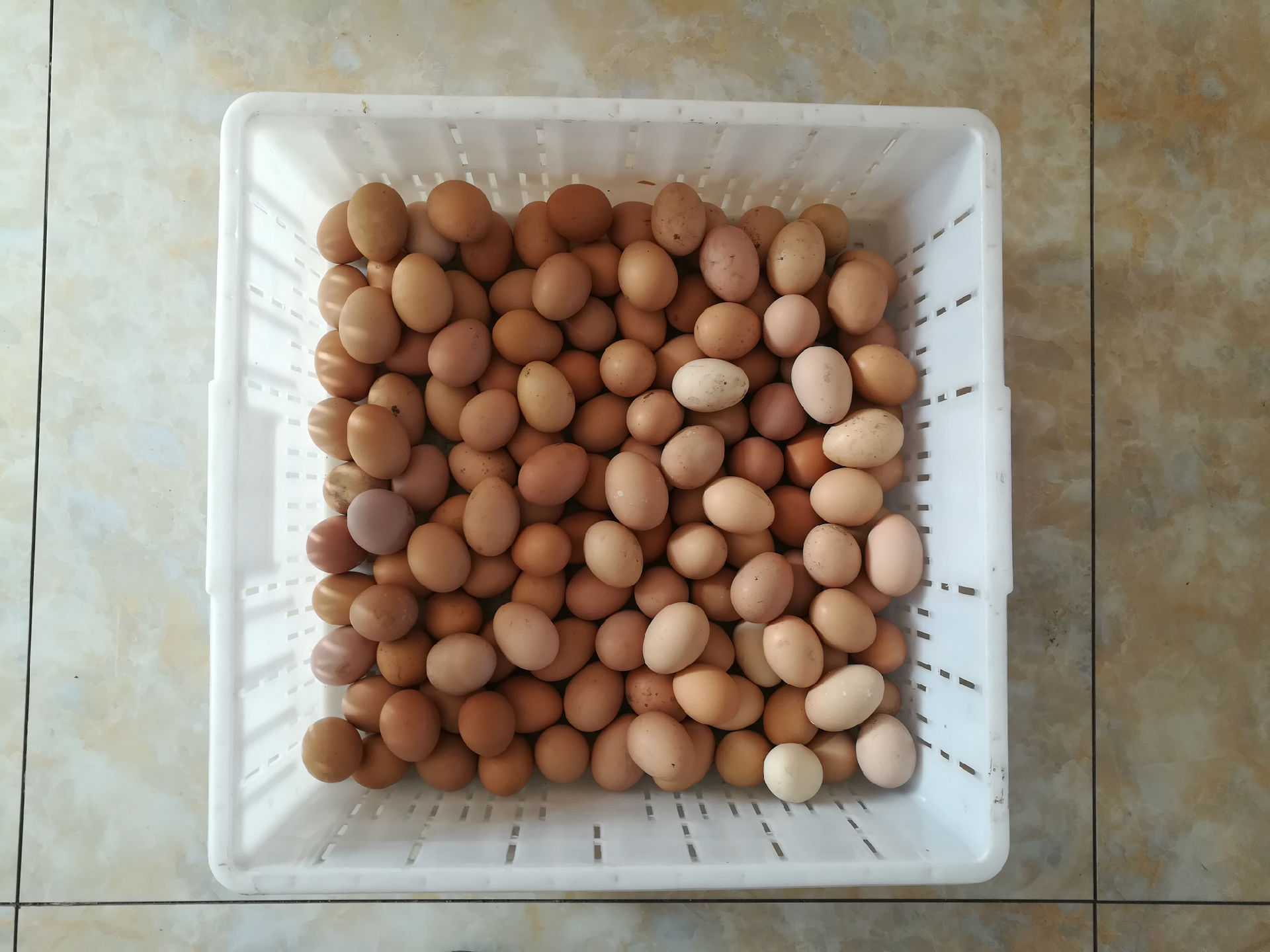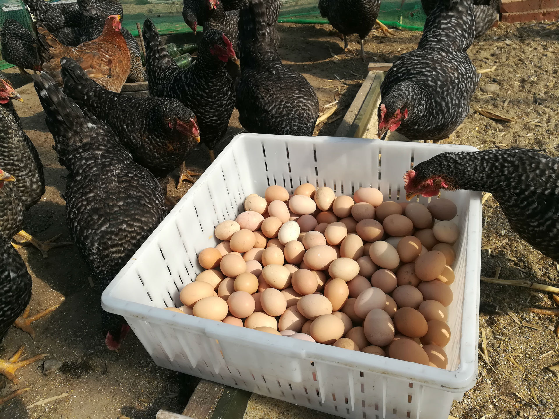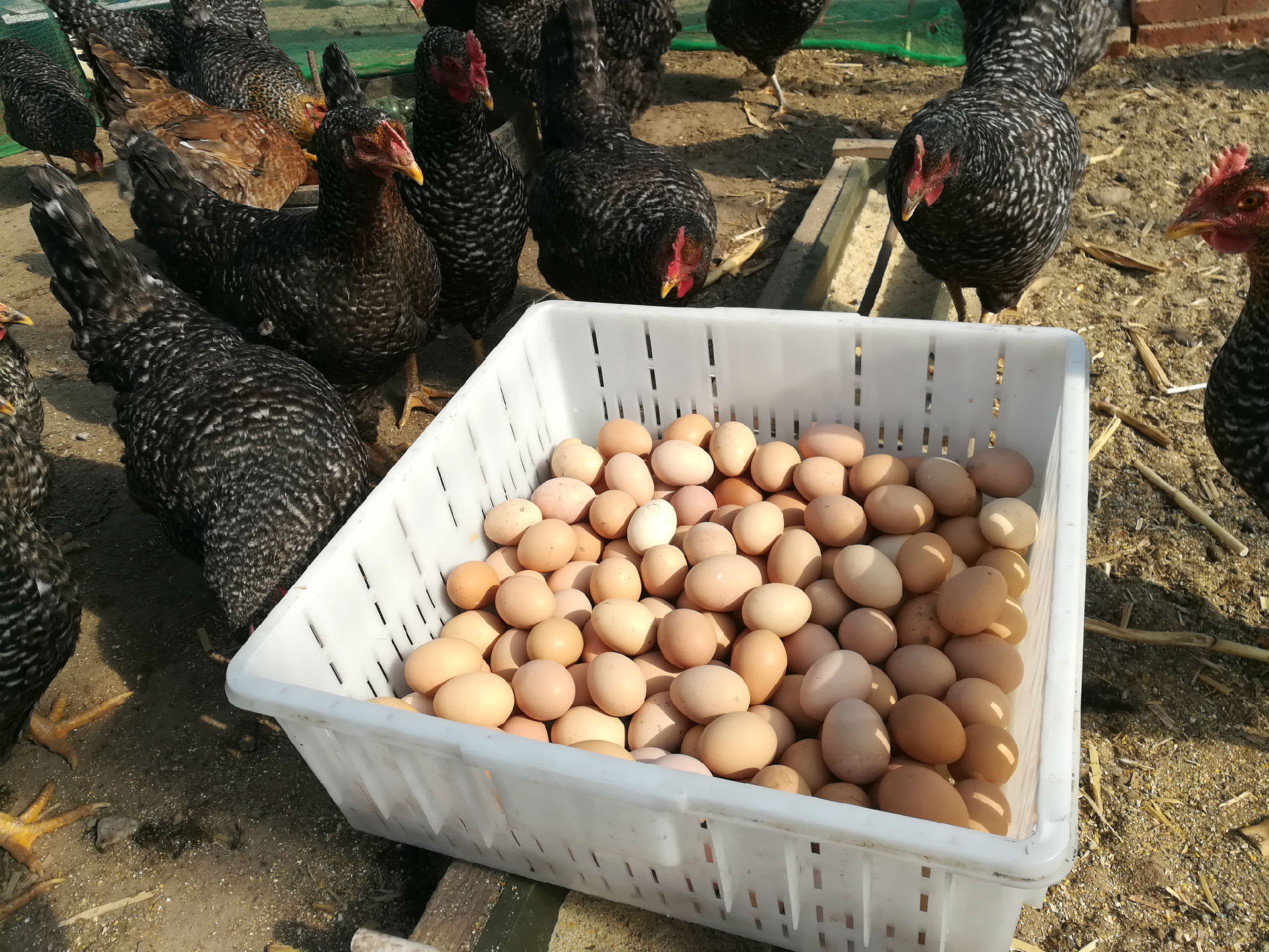 小雞吃的是玉米渣子和油葵渣子,雞蛋的外皮看起來不是特別光鮮。