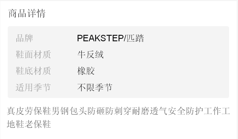 商品名稱(chēng):牛皮勞保鞋男女鋼包頭防砸防刺穿耐磨透氣安全防護(hù)工作工地老保鞋
