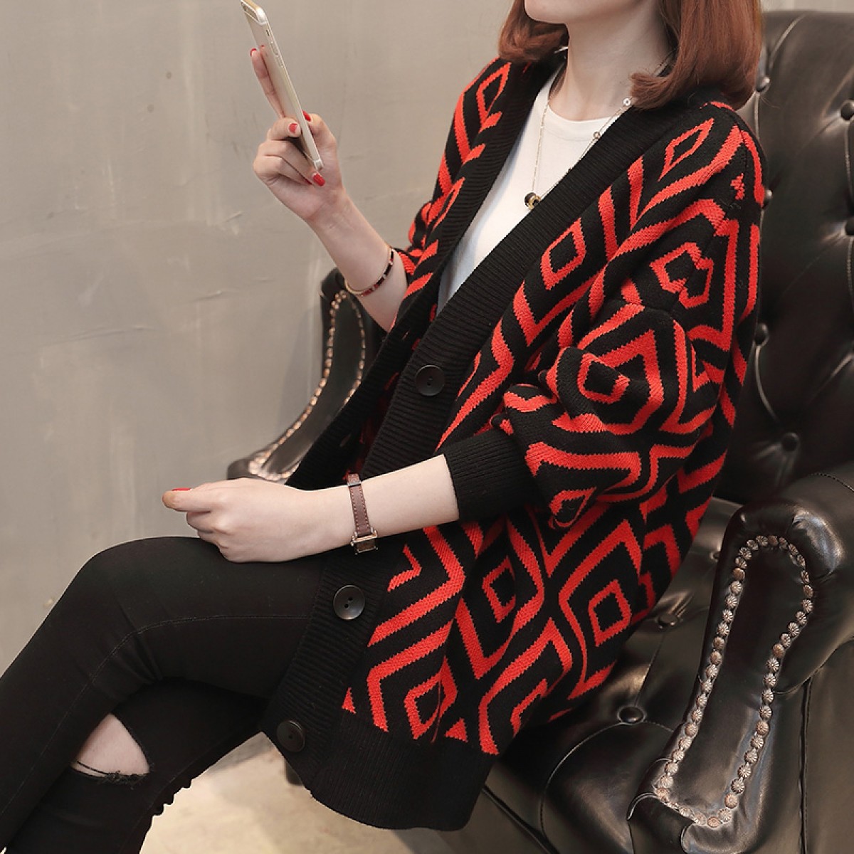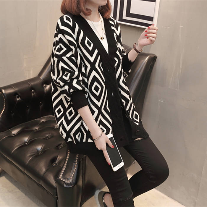 商品名稱:加肥加大碼女裝胖mm毛衣外套春秋寬松顯瘦上衣格子針織開衫200斤
