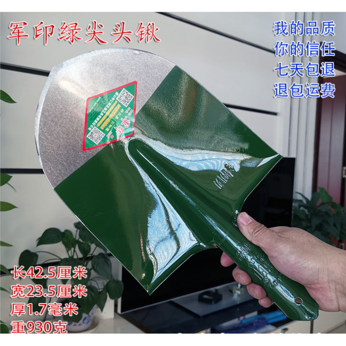 軍印全鋼綠漆尖頭鍬農(nóng)業(yè)工具鍬挖樹挖土植樹鍬錳鋼長柄鍬園林工具