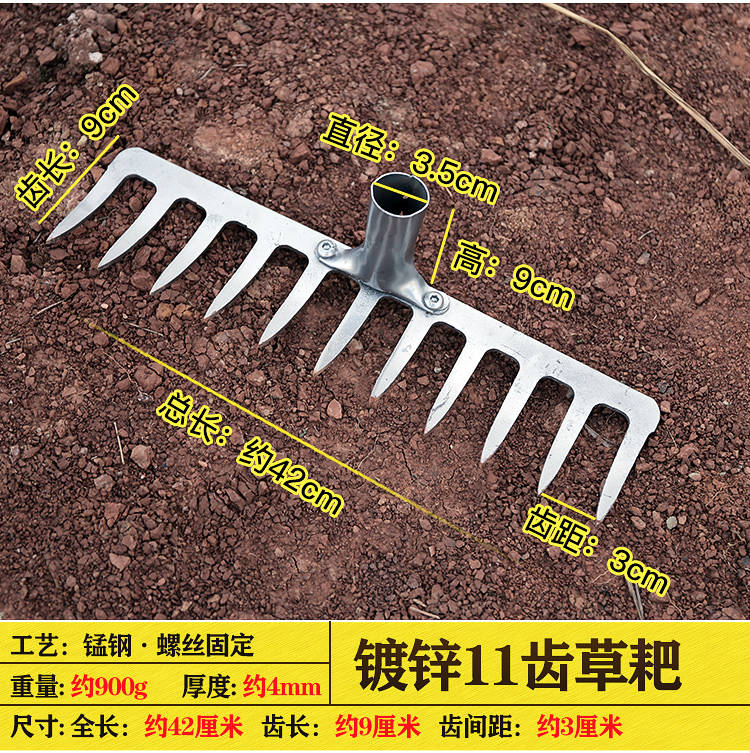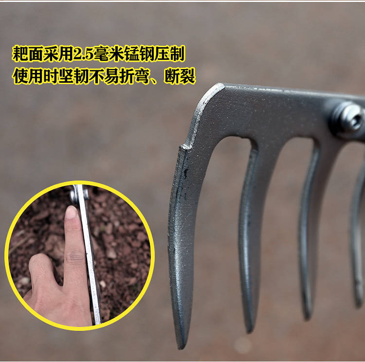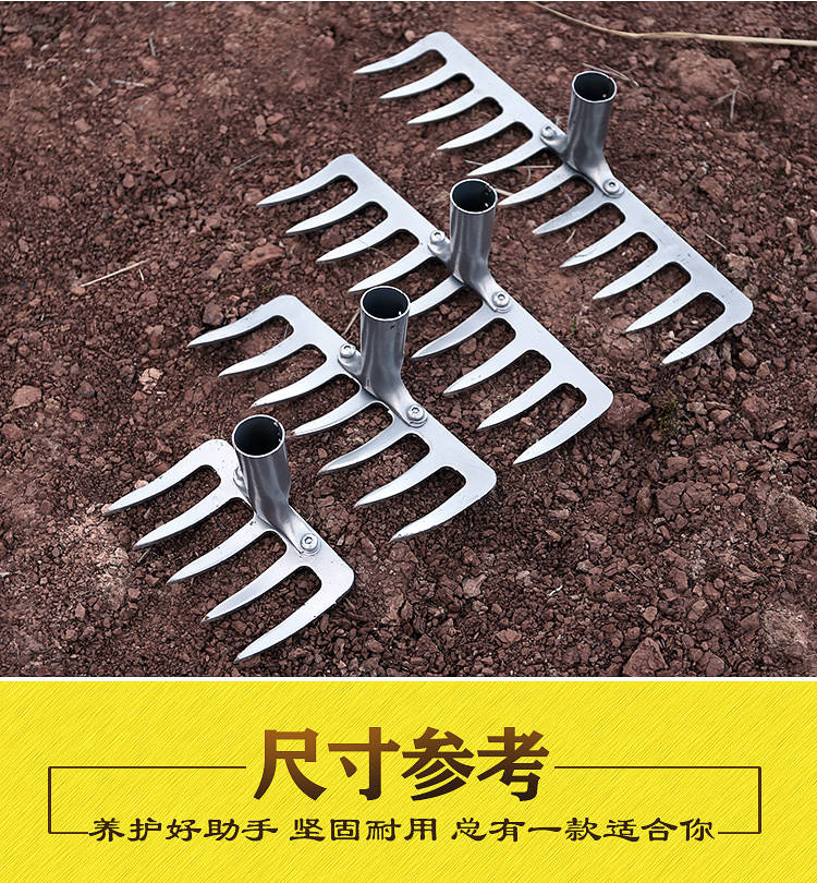 商品名稱:農(nóng)用釘耙多功能鋼扒子鐵耙子小耙子摟草松土種菜園林工具四齒釘耙