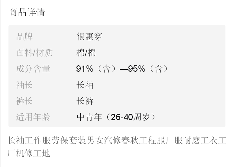 商品名稱:長袖工作服勞保套裝男女汽修春秋工程服廠服耐磨工衣工廠機(jī)修工地