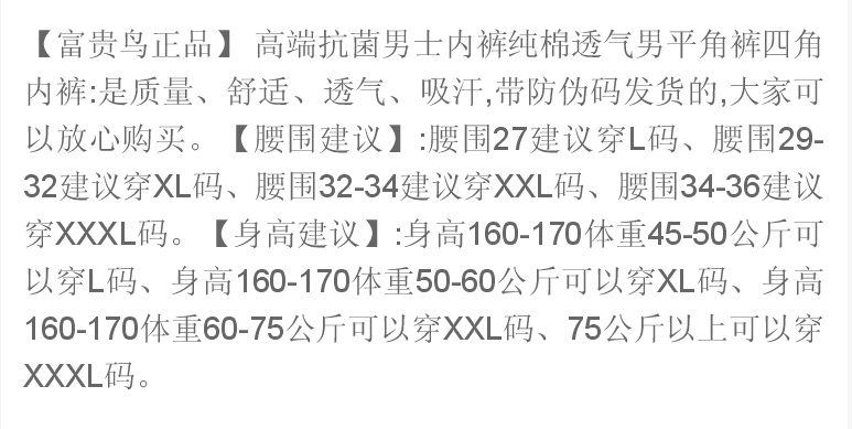 商品名稱:高端抗菌男士?jī)?nèi)褲純棉透氣性感男平角褲四角內(nèi)褲男【三條裝】
