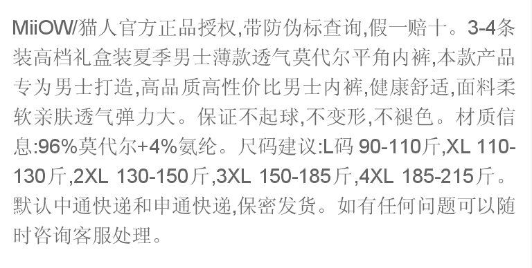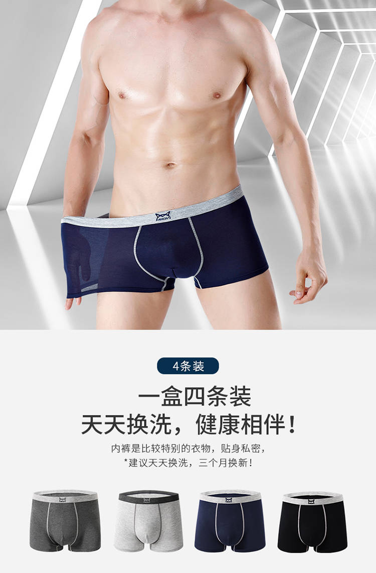 商品名稱:莫代爾男士?jī)?nèi)褲男平角褲青年男生性感透氣中腰四角褲