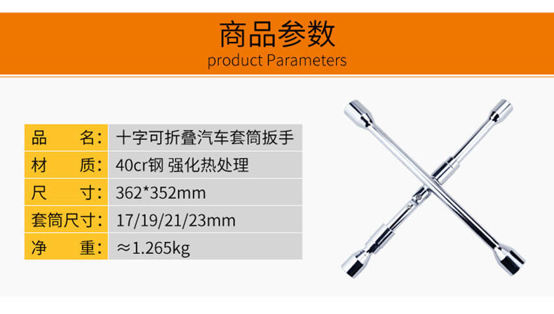 商品名稱:汽車輪胎扳手省力十字拆卸扳手換輪胎工具扳手折疊不打滑輪胎扳手