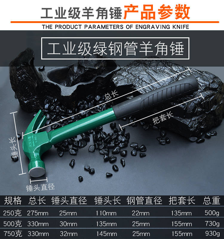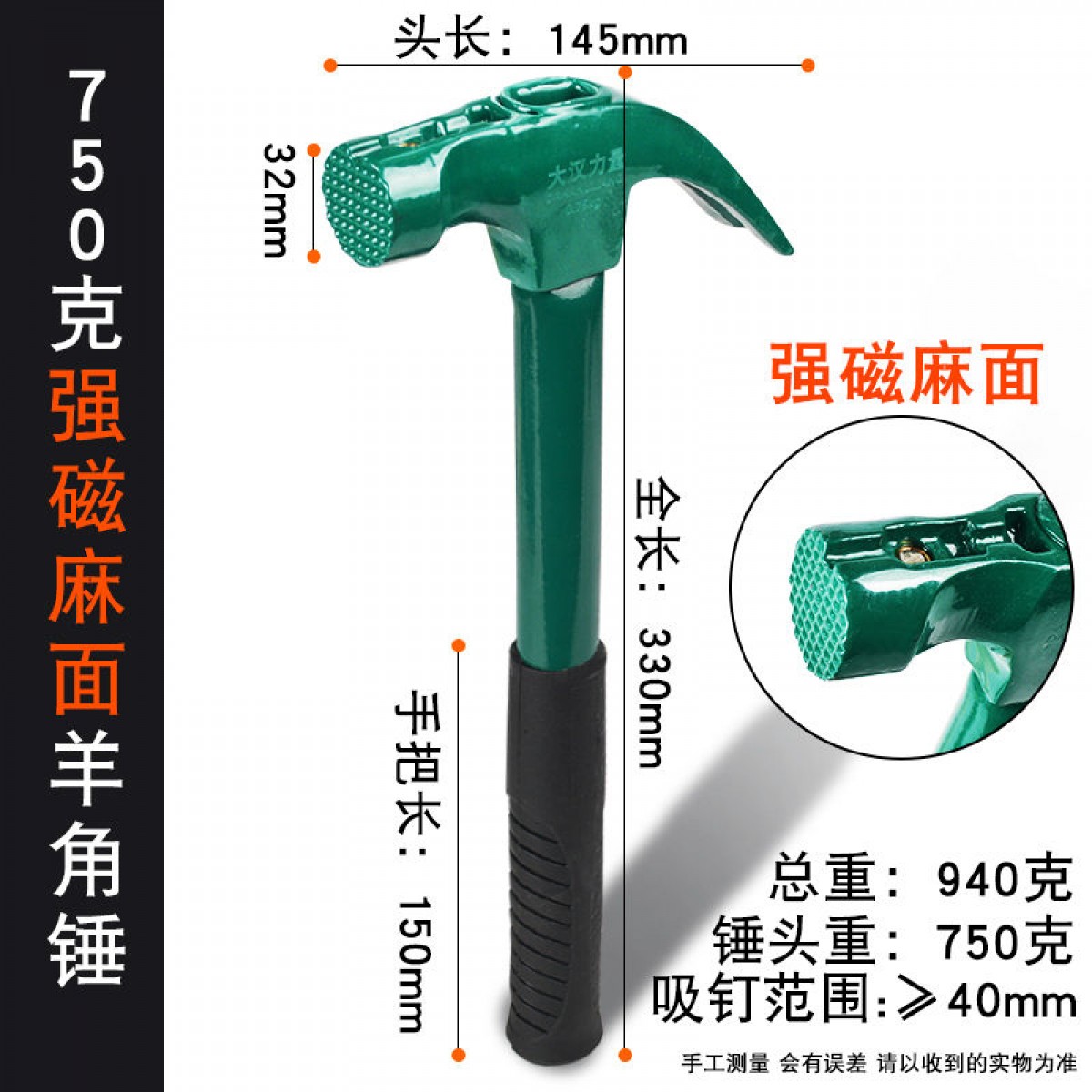 商品名稱:錘子鋼管柄方頭羊角錘直角錘 起釘錘鐵錘拔釘錘 吸頂麻面工地木工釘錘