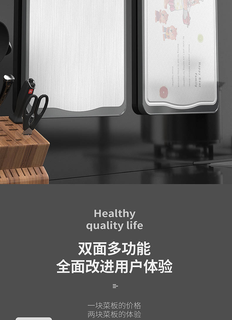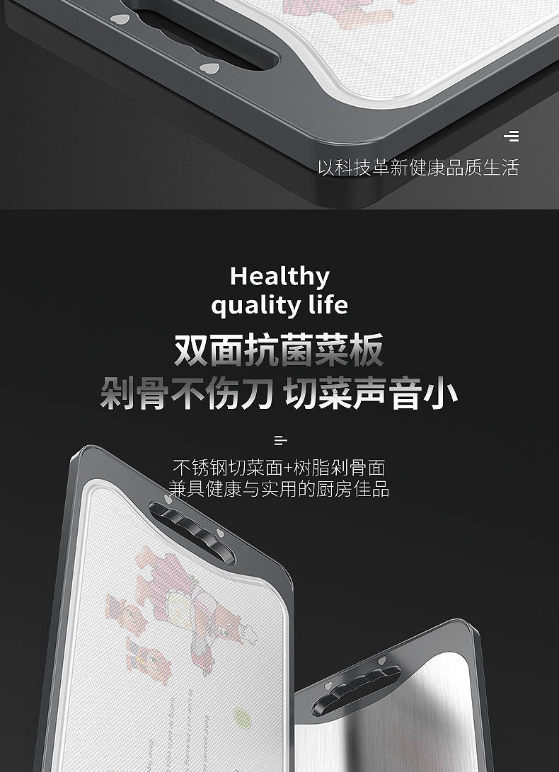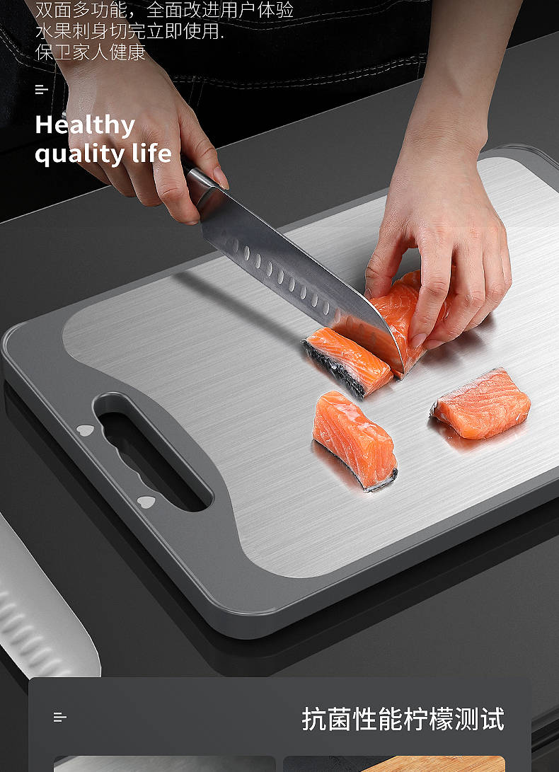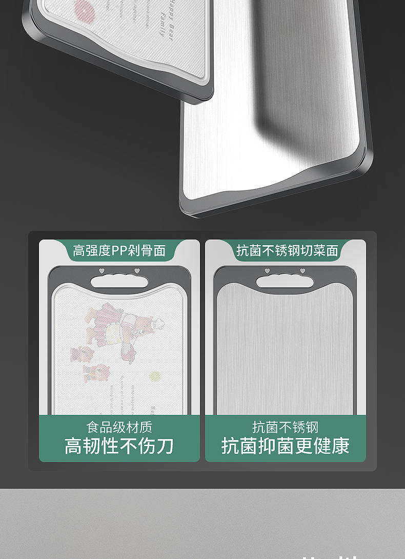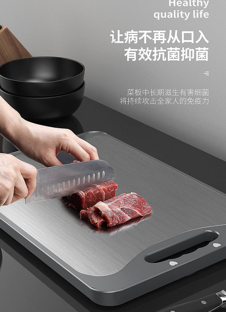 商品名稱:德國304不銹鋼雙面切菜板刀板抗菌防霉家用砧板揉搟面水果板案板
