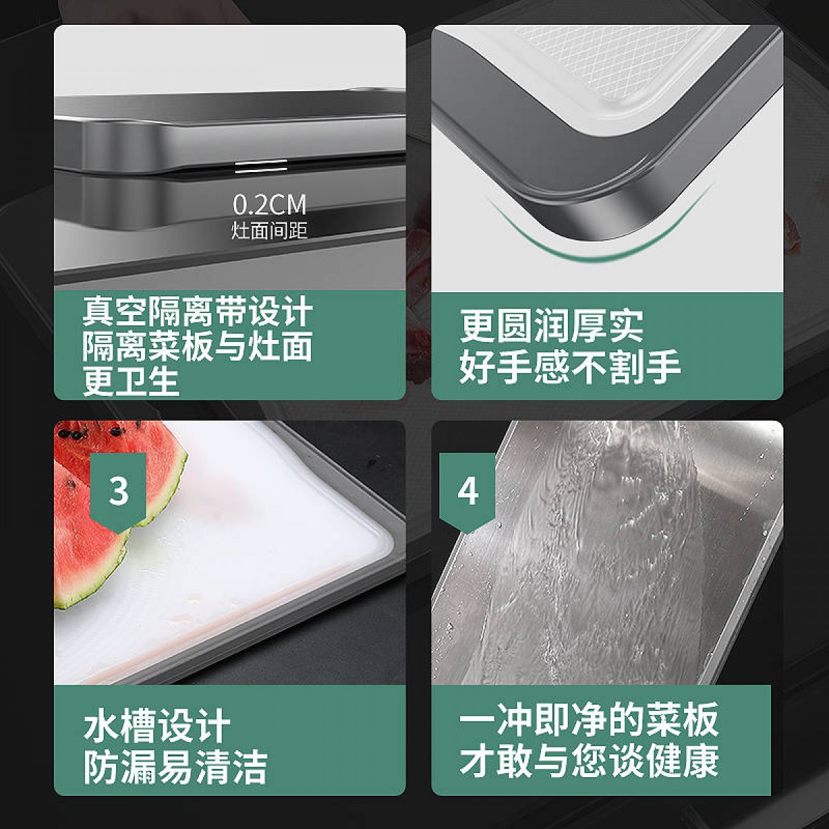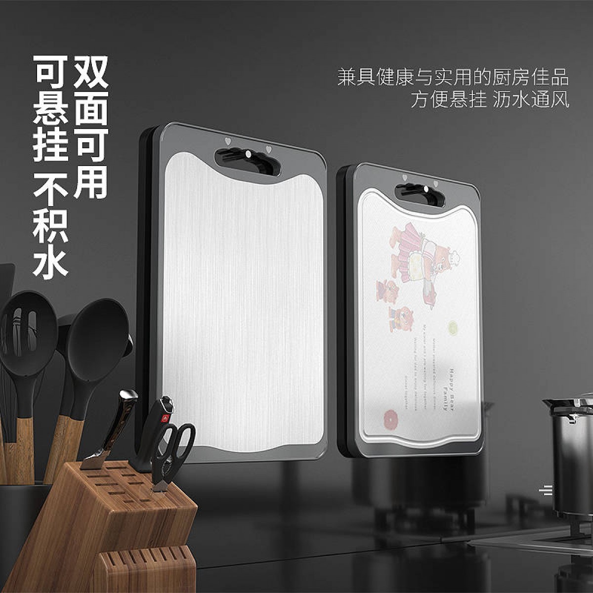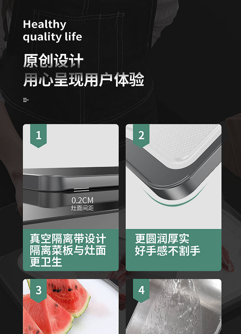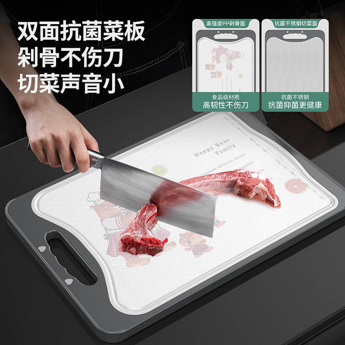 商品名稱:德國304不銹鋼雙面切菜板刀板抗菌防霉家用砧板揉搟面水果板案板