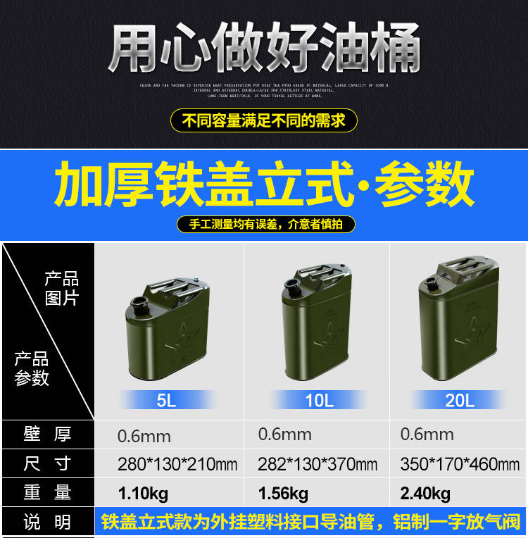商品名稱:加厚汽油桶柴油壺鐵油桶10L20L30L40L加油桶防爆汽車摩托備用油箱