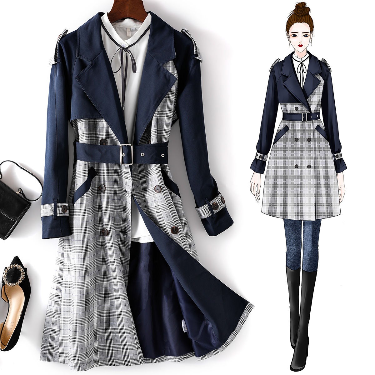 商品名稱:2020春新品簡約拼接收腰顯瘦中長款風(fēng)衣外套女裝
