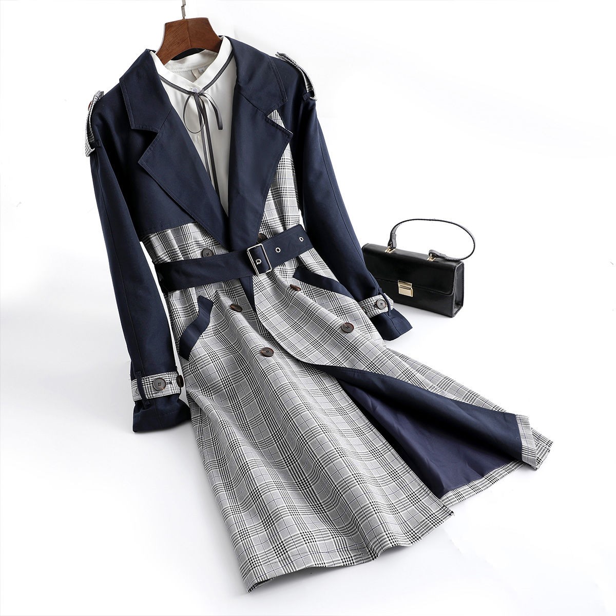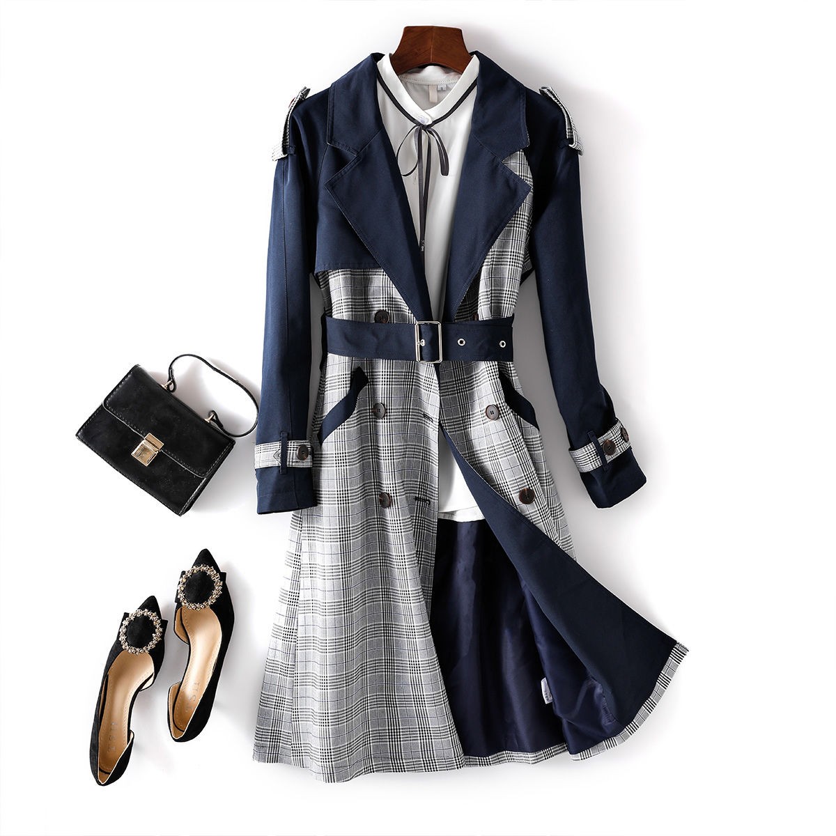 2020春新品簡約拼接收腰顯瘦中長款風(fēng)衣外套女裝