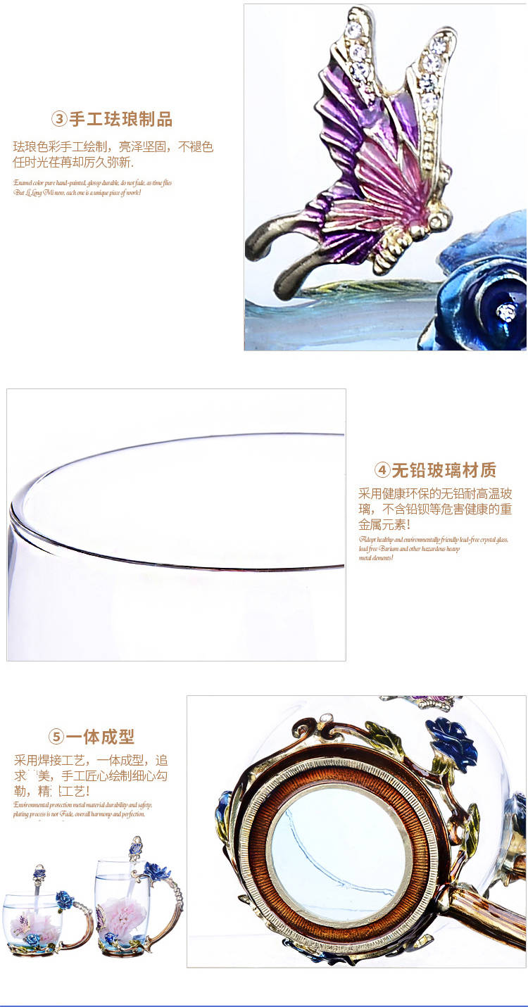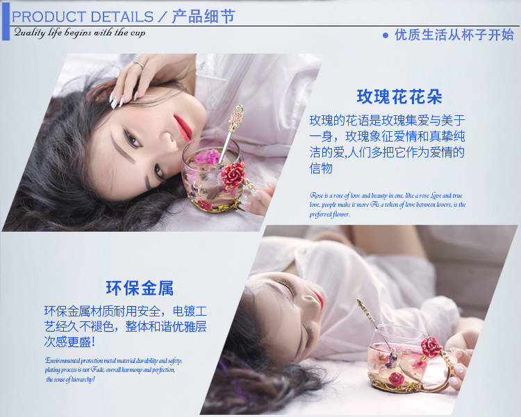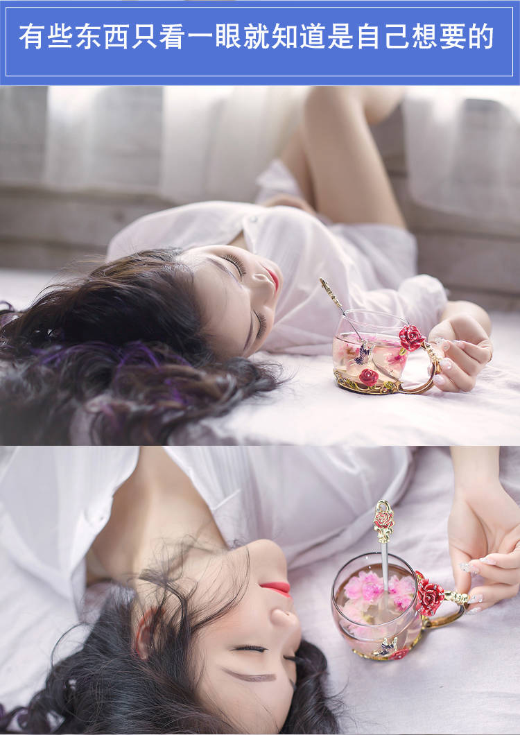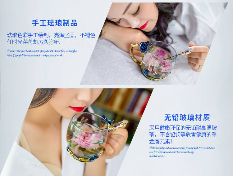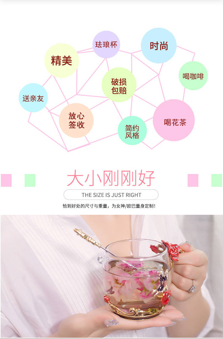 商品名稱:琺瑯彩水杯耐熱玻璃杯女洛施花舍玫瑰花茶杯家用杯子套裝創(chuàng)意禮物