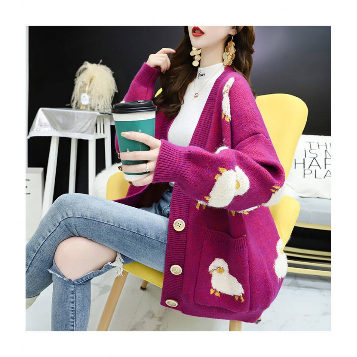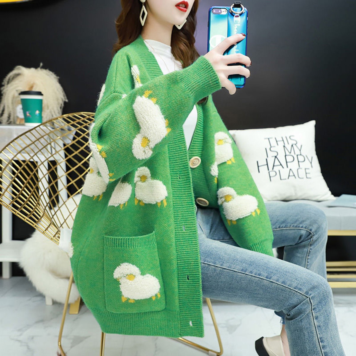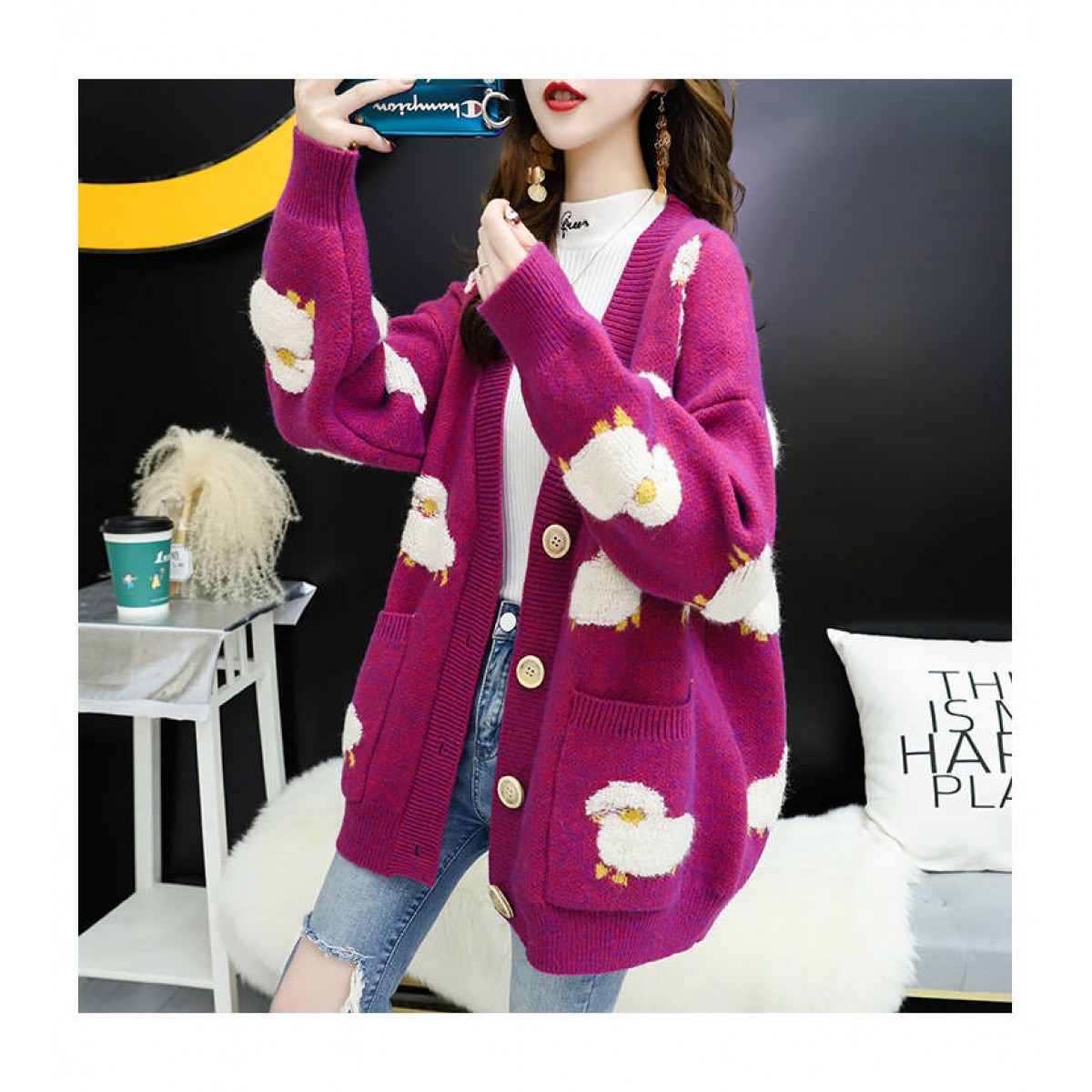 商品名稱:百搭2020春裝新款網(wǎng)紅毛衣開(kāi)衫女慵懶風(fēng)寬松外穿甜美針織外套潮