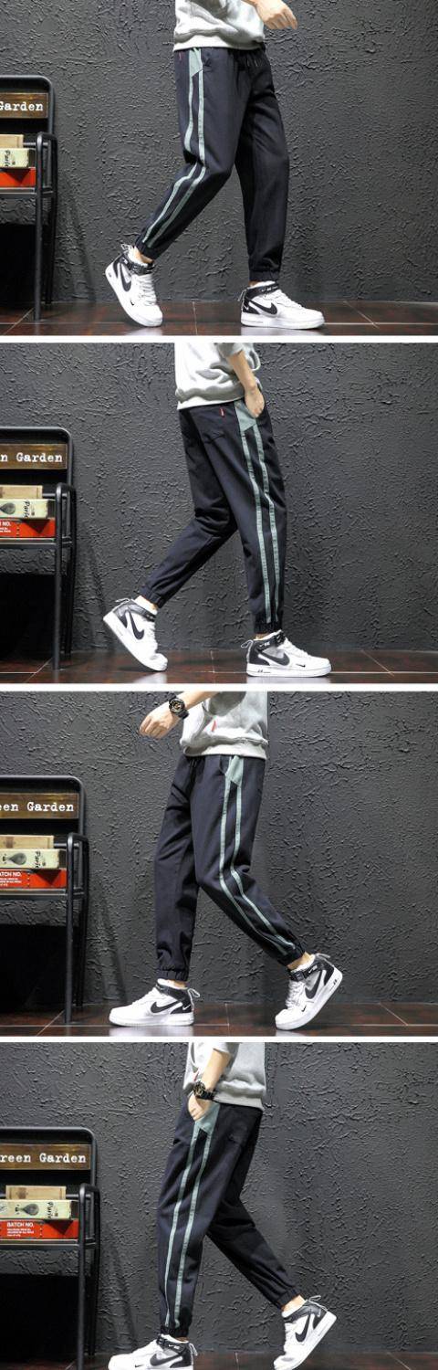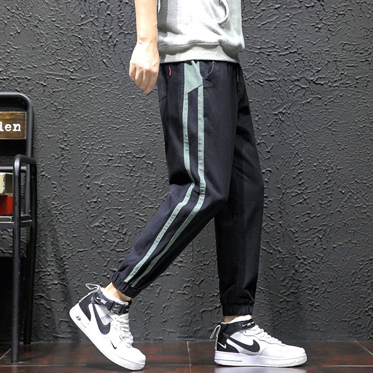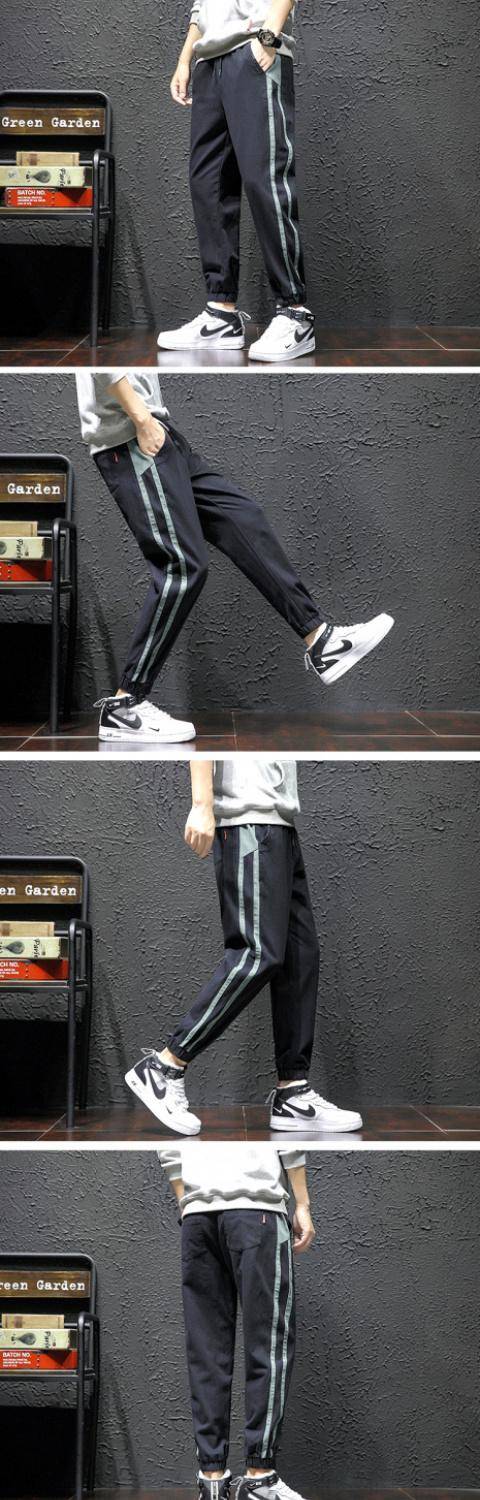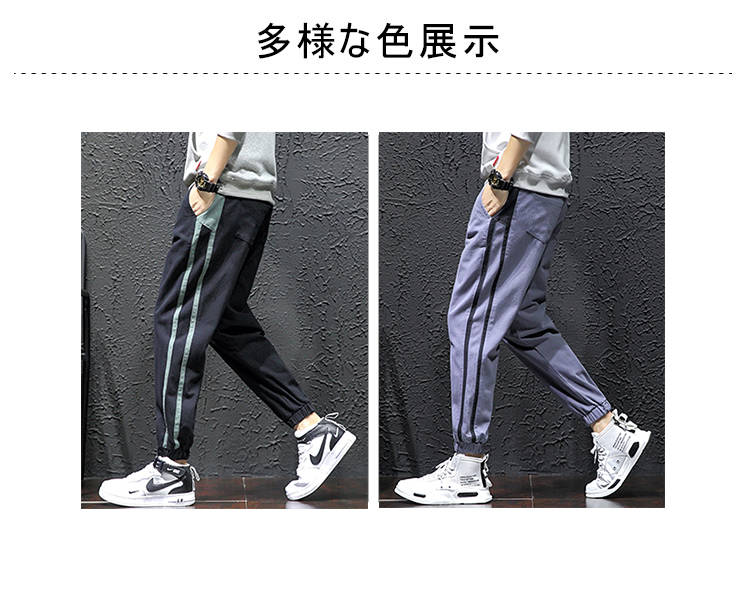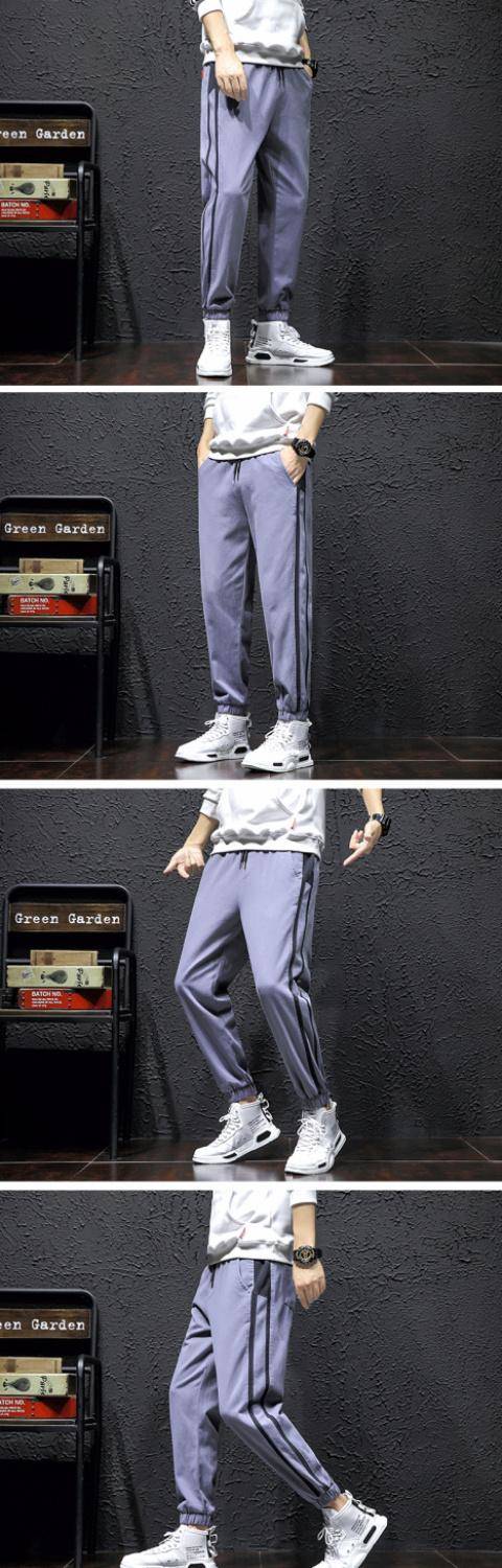 商品名稱:褲子男春夏新款男士韓版潮流百搭條紋寬松休閑長褲運動褲小腳褲