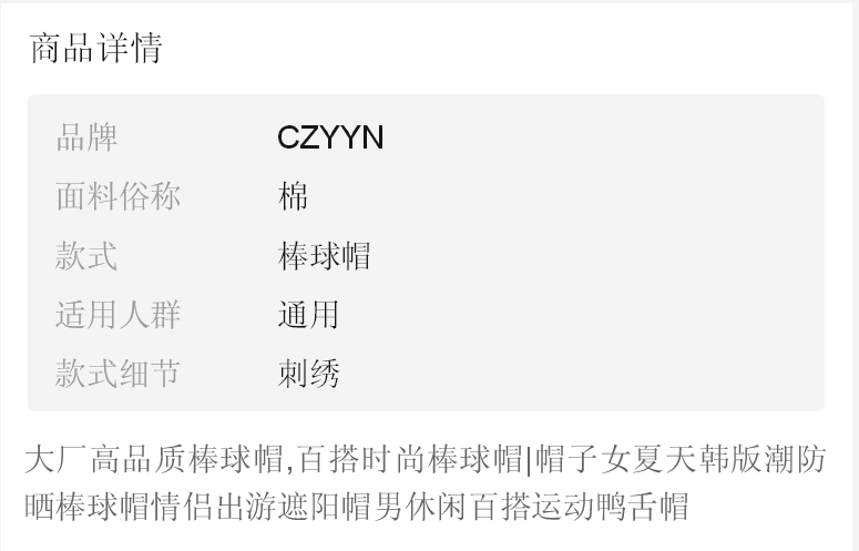 商品名稱:帽子女韓版潮夏天百搭休閑學(xué)生街頭棒球帽男春秋遮陽太陽帽鴨舌帽