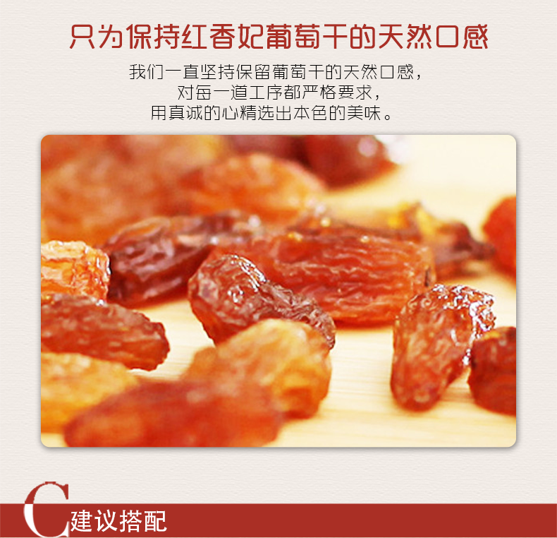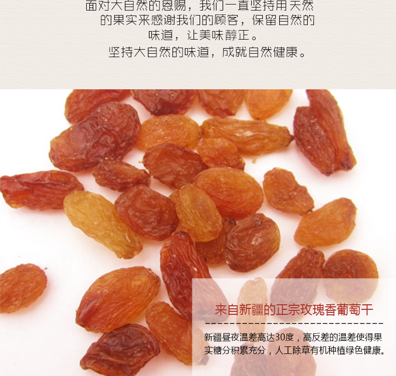 商品名稱:新疆 喀什 疆果果 玫瑰香葡萄干260g/袋 葡萄干