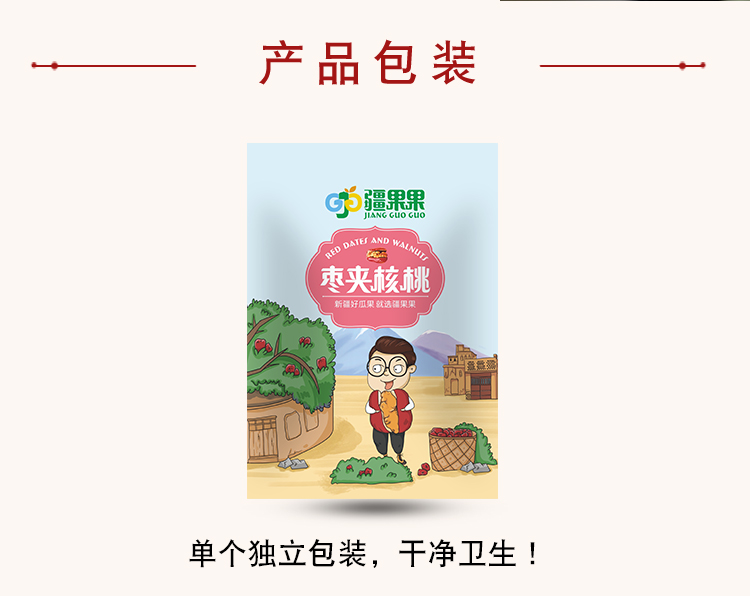 商品名稱:新疆 喀什 疆果果 棗夾核桃280g/袋 棗與核桃