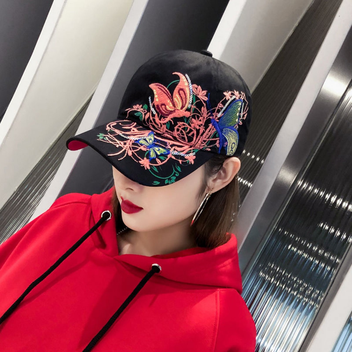 帽子女春秋韓版百搭鴨舌帽刺繡黑色民族風(fēng)遮陽帽休閑嘻哈棒球帽