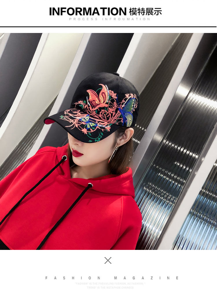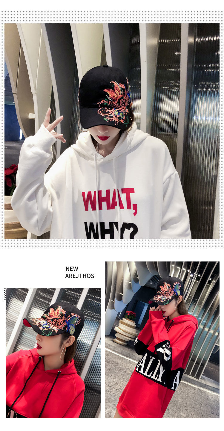 商品名稱:帽子女春秋韓版百搭鴨舌帽刺繡黑色民族風(fēng)遮陽帽休閑嘻哈棒球帽