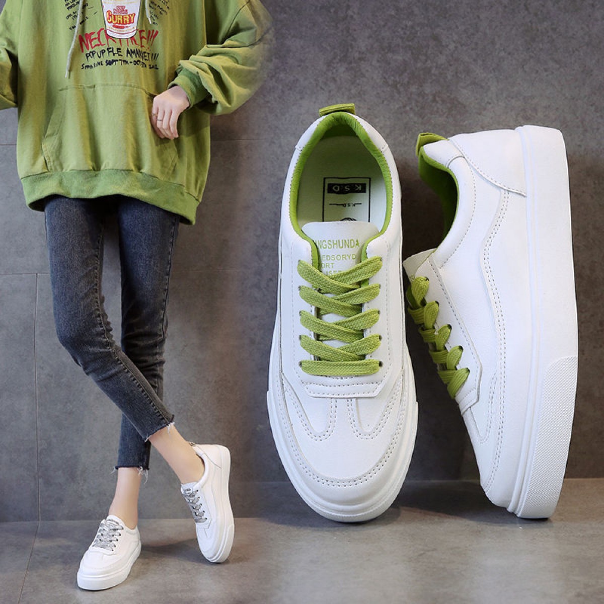 商品名稱(chēng):2020春夏新款小白鞋女百搭女鞋韓版系帶學(xué)生鞋平底鞋運(yùn)動(dòng)休閑板鞋