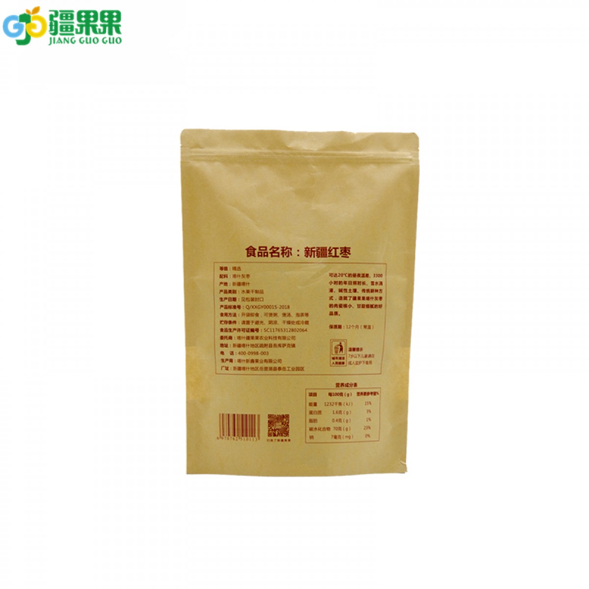 商品名稱:新疆 喀什 疆果果扶貧棗500g*5/袋 紅棗