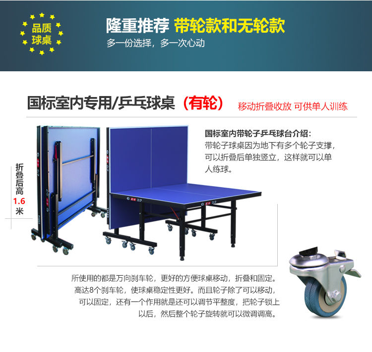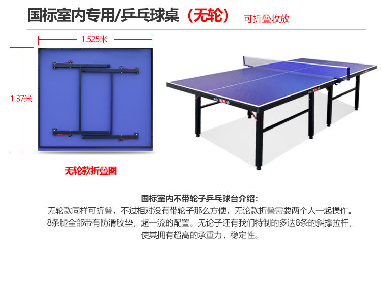 商品名稱:乒乓球桌家用室內標準可折疊兵乓球桌乒乓桌專業(yè)乒乓球臺案子