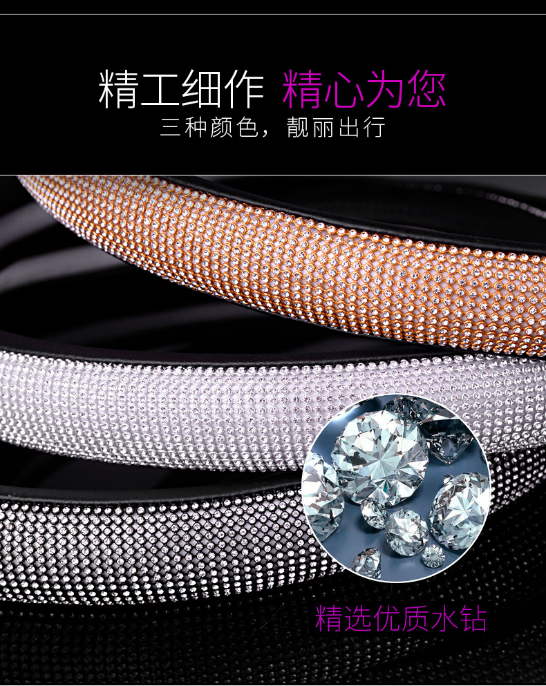 商品名稱:新款夏季汽車方向盤套四季通用型冰絲汽車把套鑲鉆汽車方向盤套女