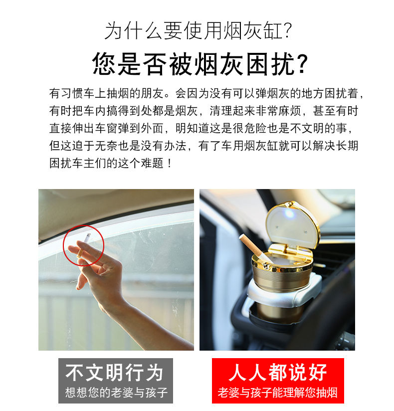 商品名稱:汽車煙灰缸多功能出風(fēng)口掛式車用車載煙灰缸帶LED燈汽車內(nèi)飾用品