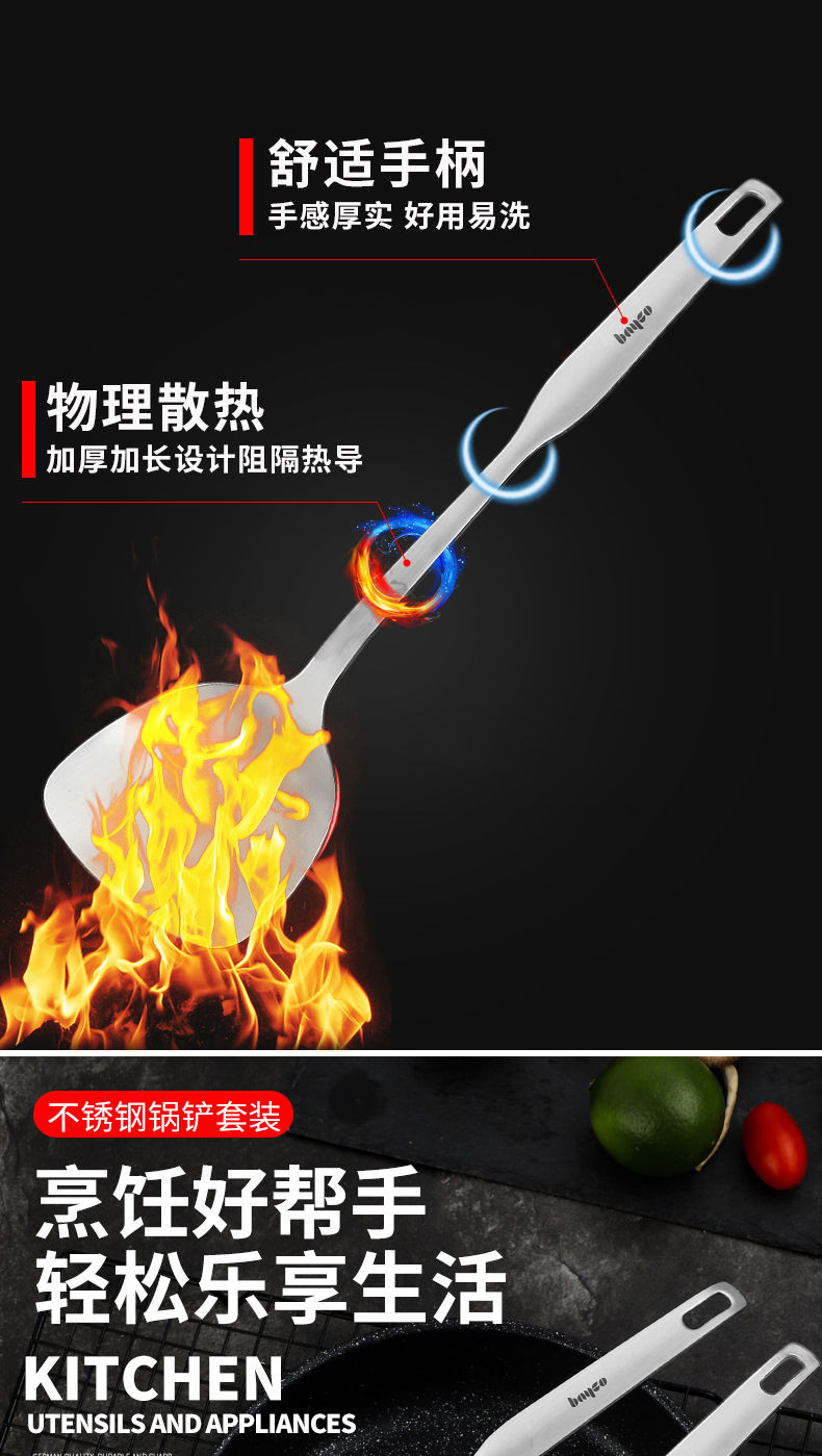商品名稱:鍋鏟炒菜鏟子廚房廚具套裝不銹鋼家用湯勺大號勺子喝湯漏勺過濾網