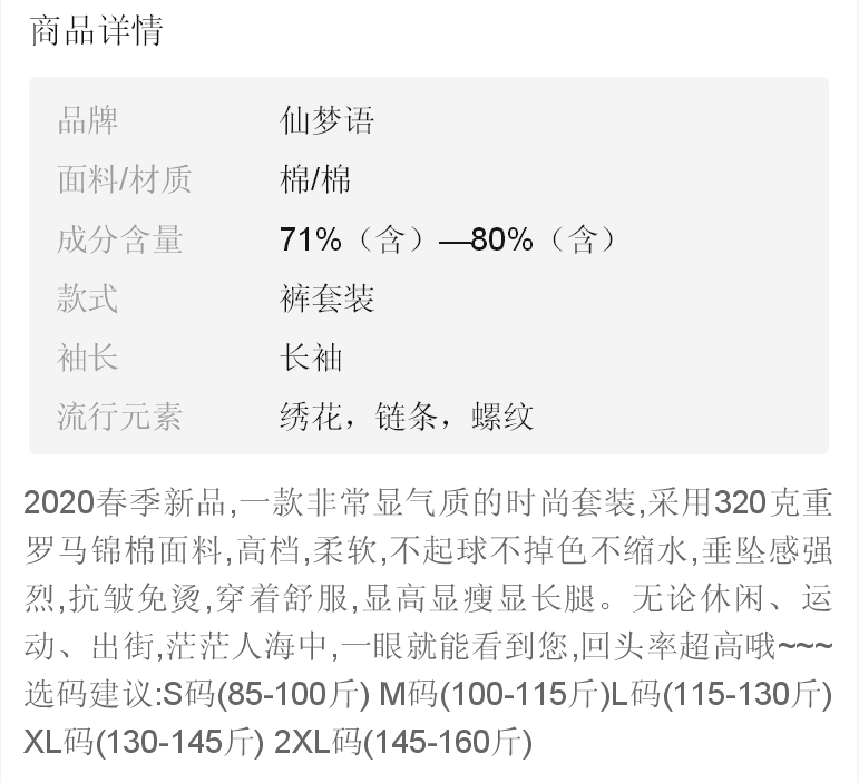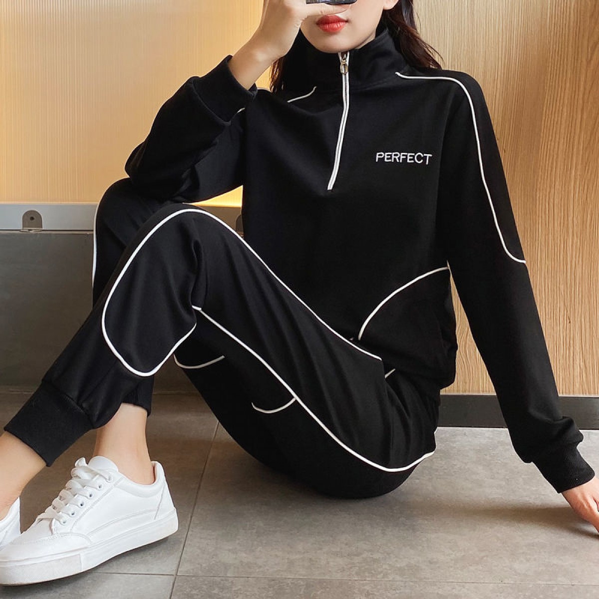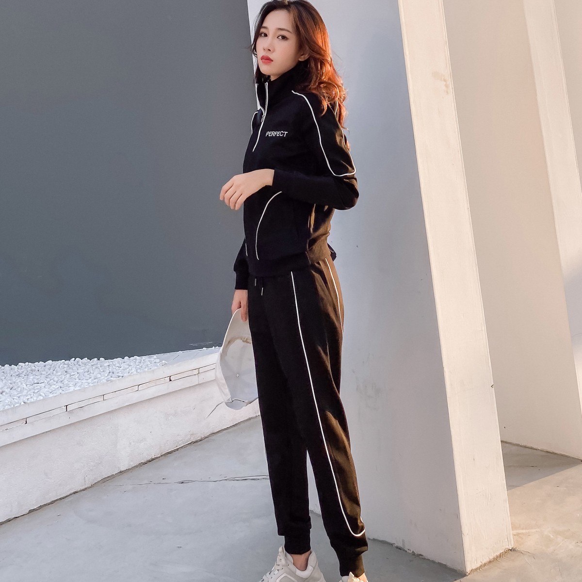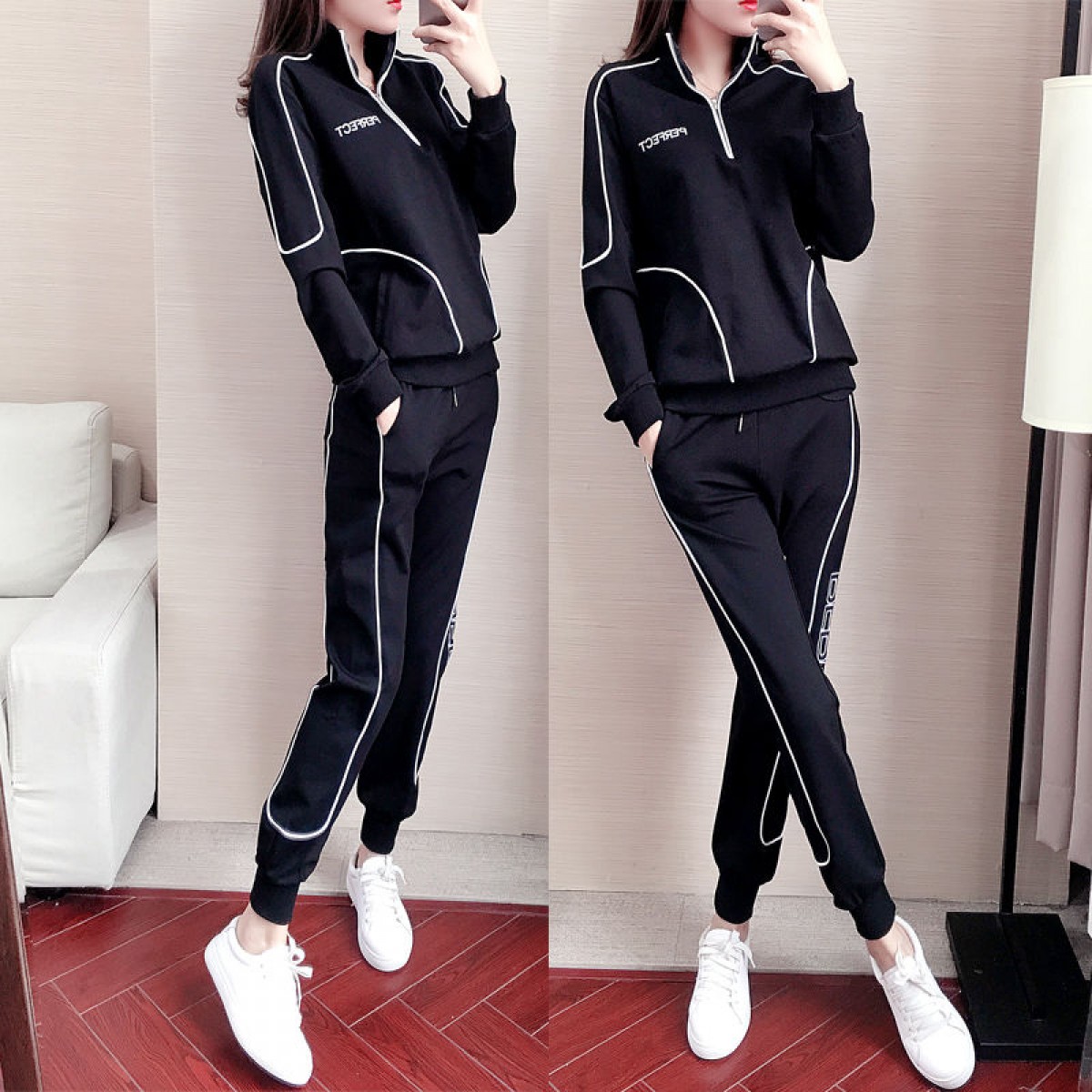 商品名稱:春季套裝女運動服套裝女2020新款時尚休閑套裝女顯瘦兩件套情侶裝