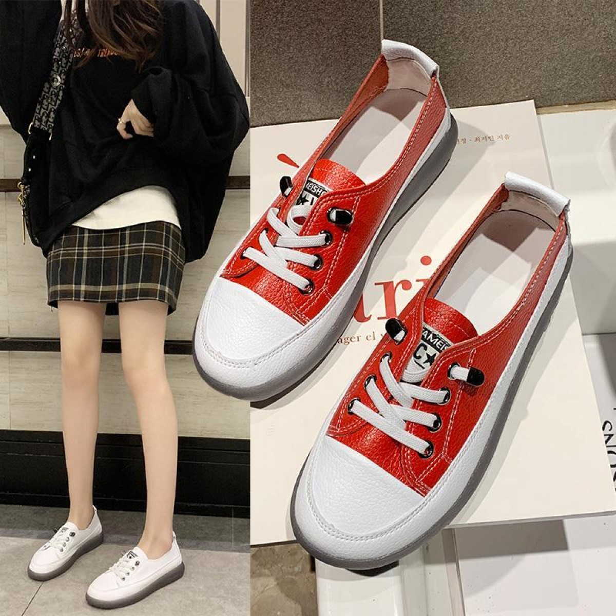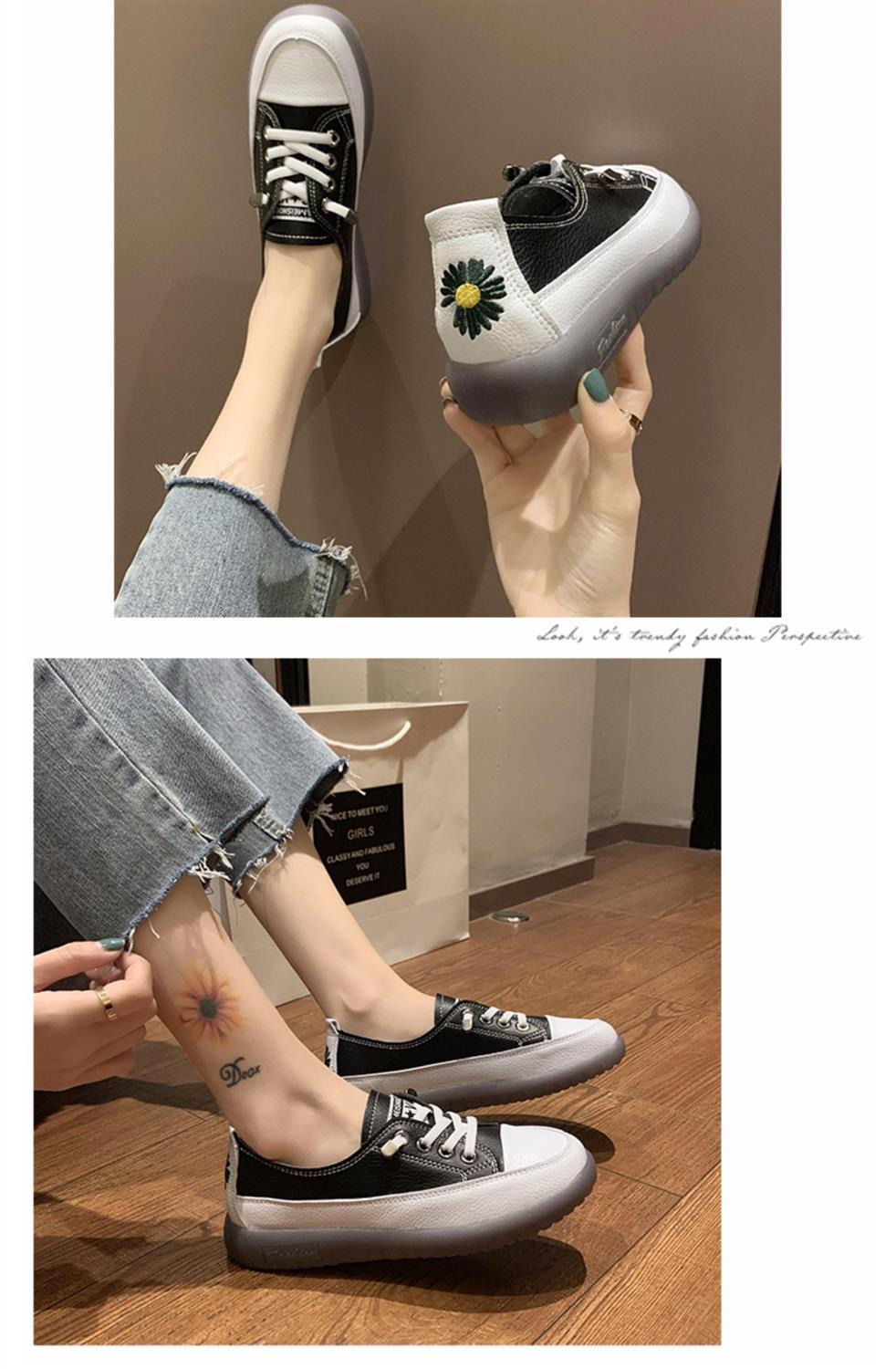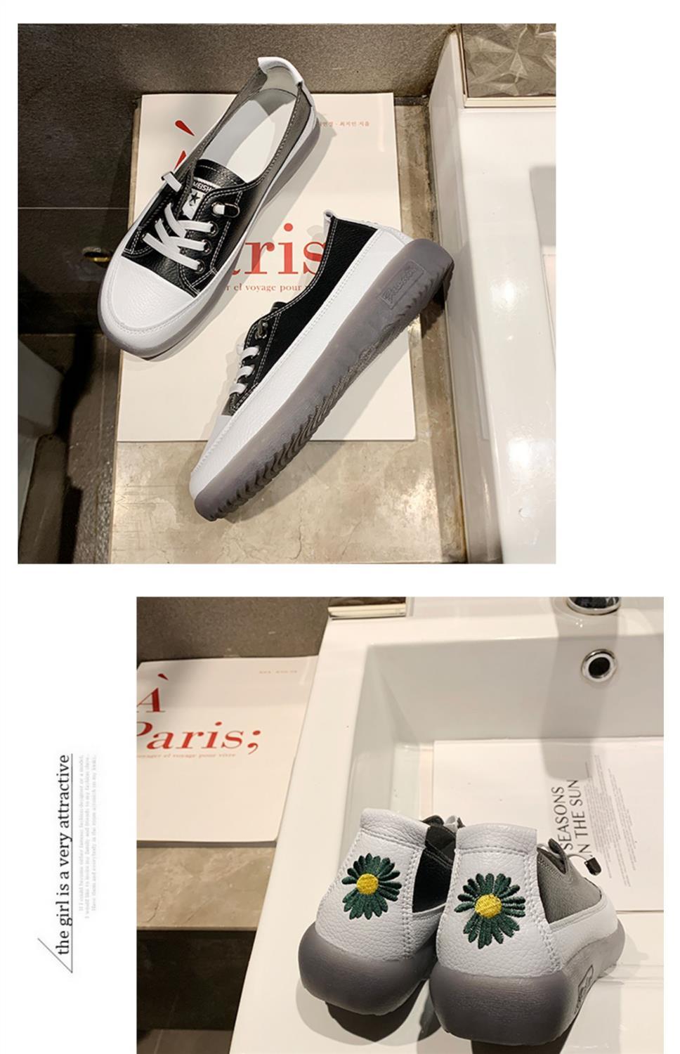 商品名稱:真軟皮牛筋底一腳蹬女春季平底淺口單鞋百搭小雛菊學(xué)生皮鞋