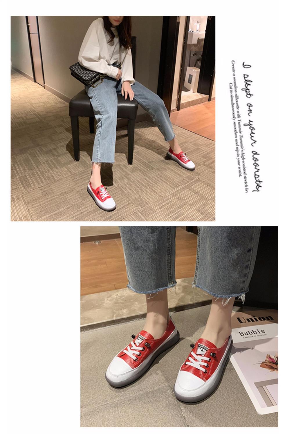 真軟皮牛筋底一腳蹬女春季平底淺口單鞋百搭小雛菊學(xué)生皮鞋