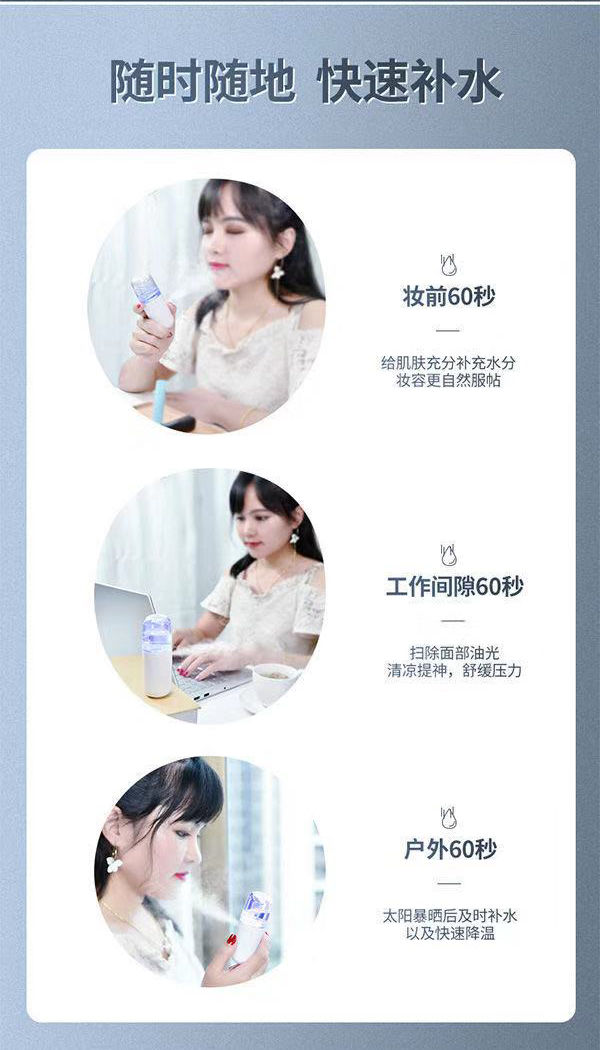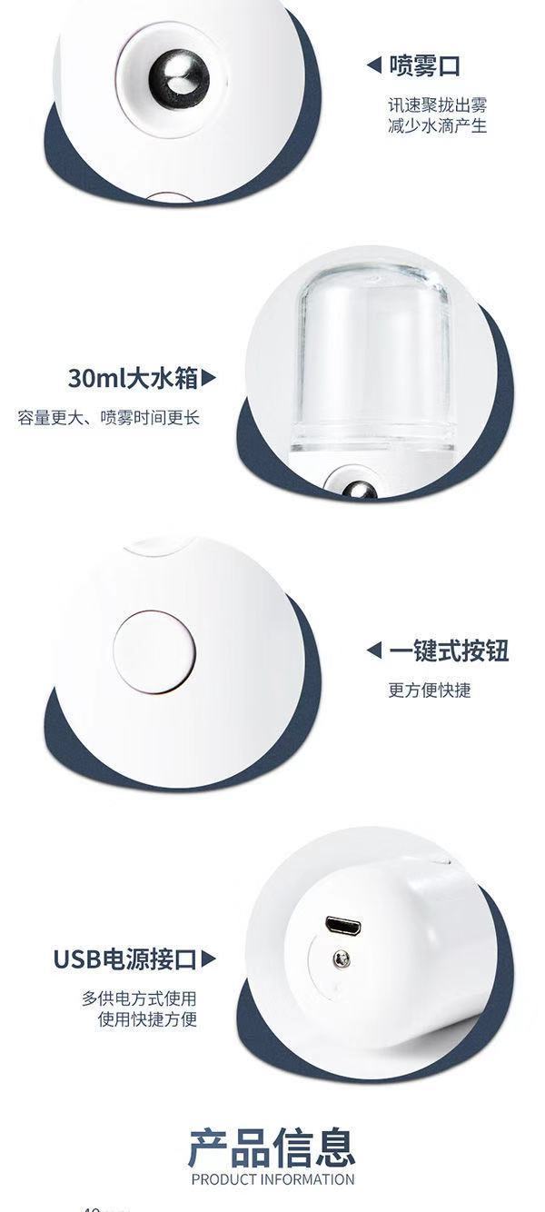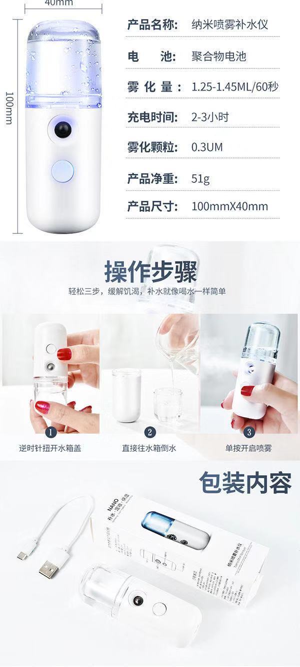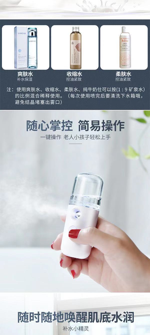 商品名稱:納米噴霧補(bǔ)水儀便攜式臉部保濕補(bǔ)水蒸臉器冷噴美容儀加濕神器