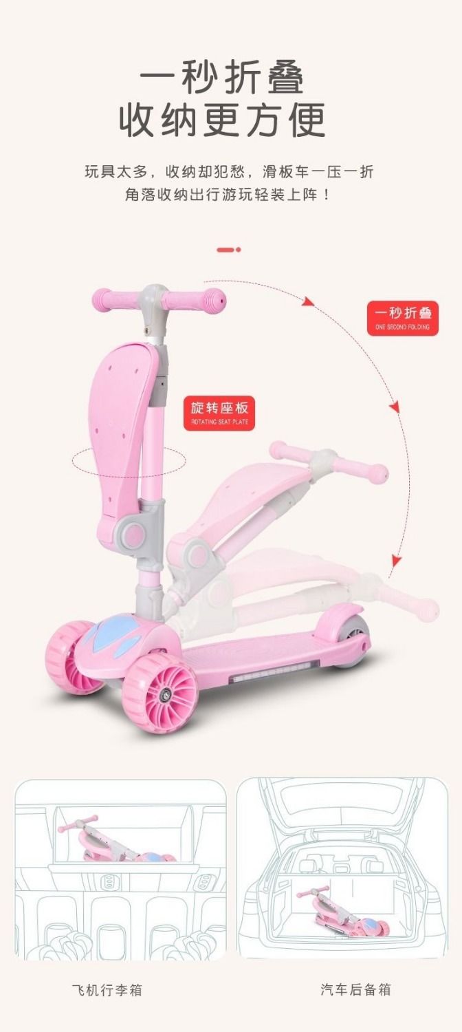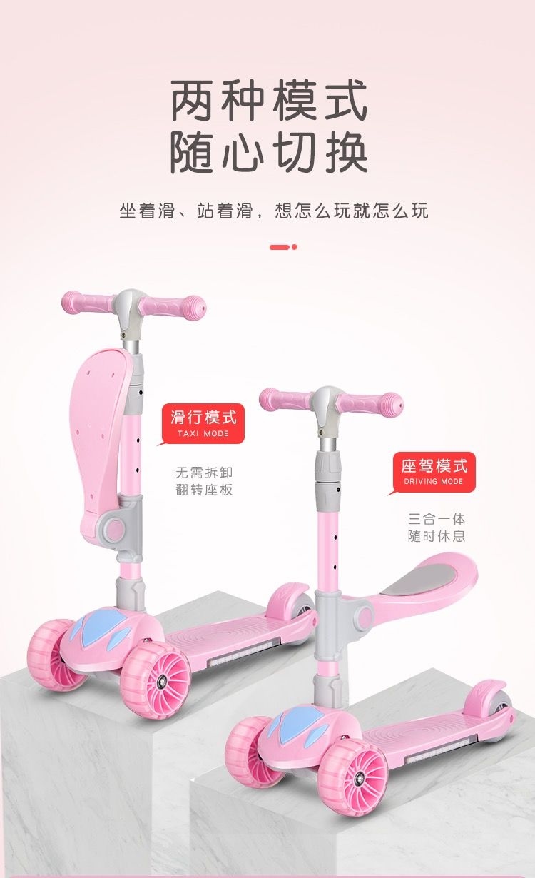 商品名稱:滑板車兒童1-3-6-12歲可坐小孩踏板車三合一滑滑男女孩寶寶溜溜車