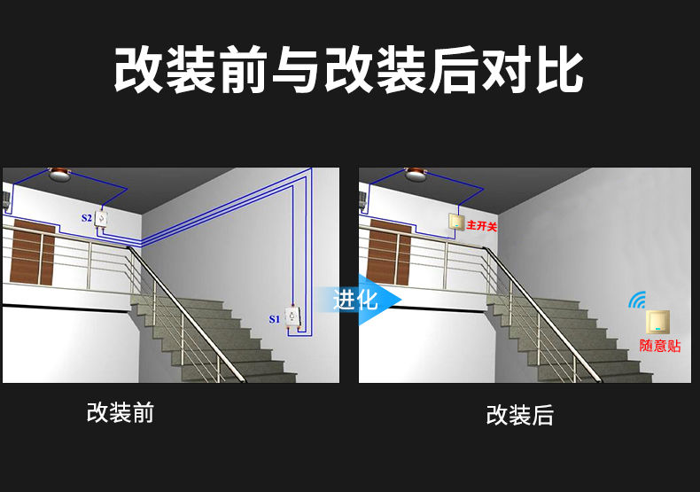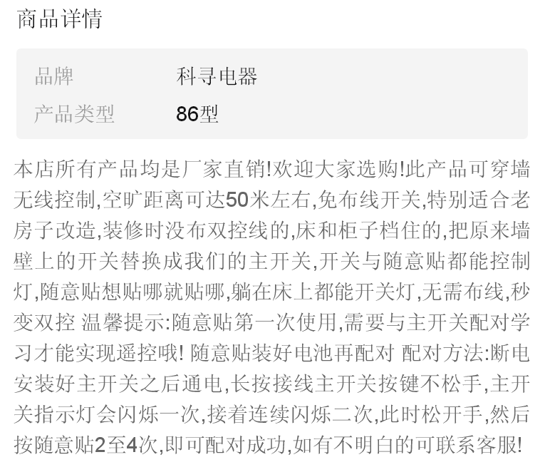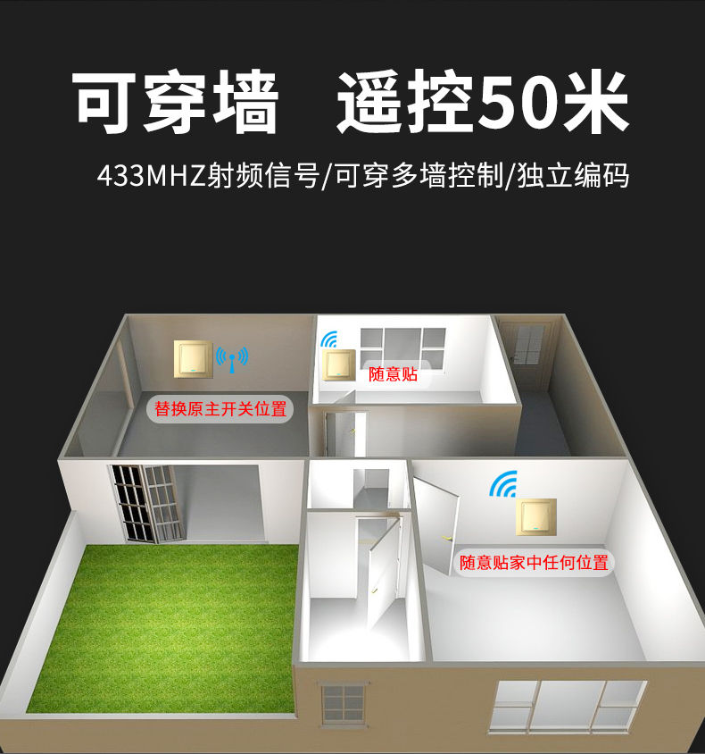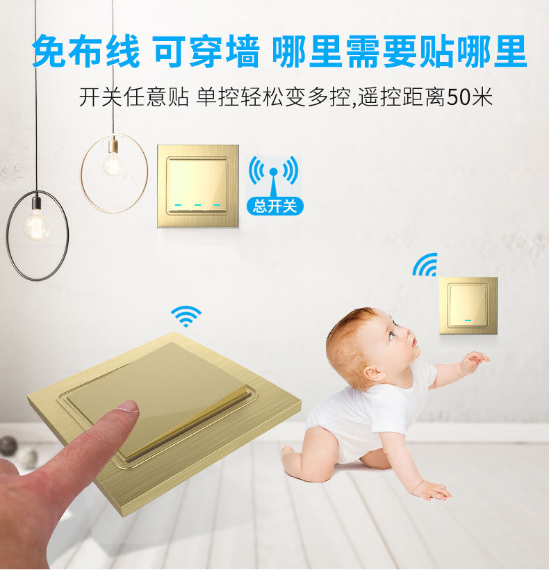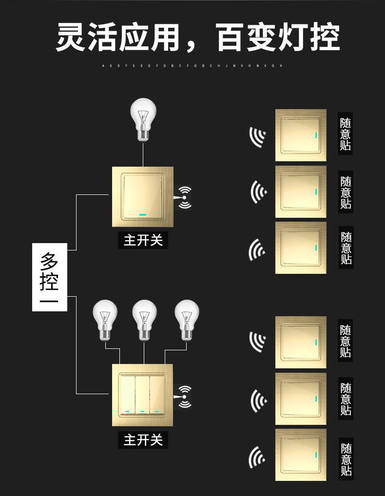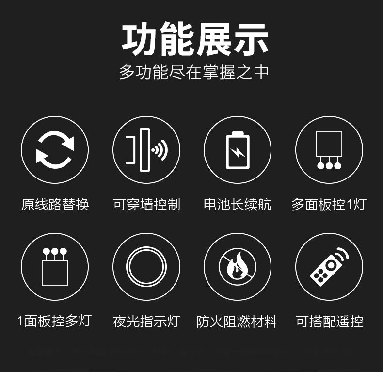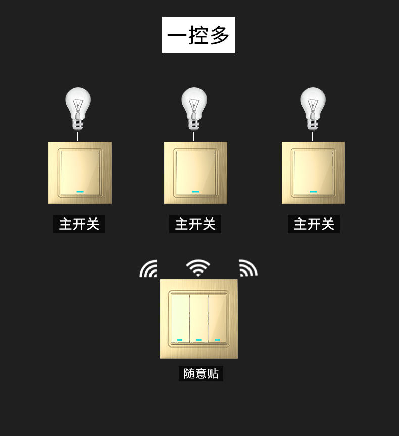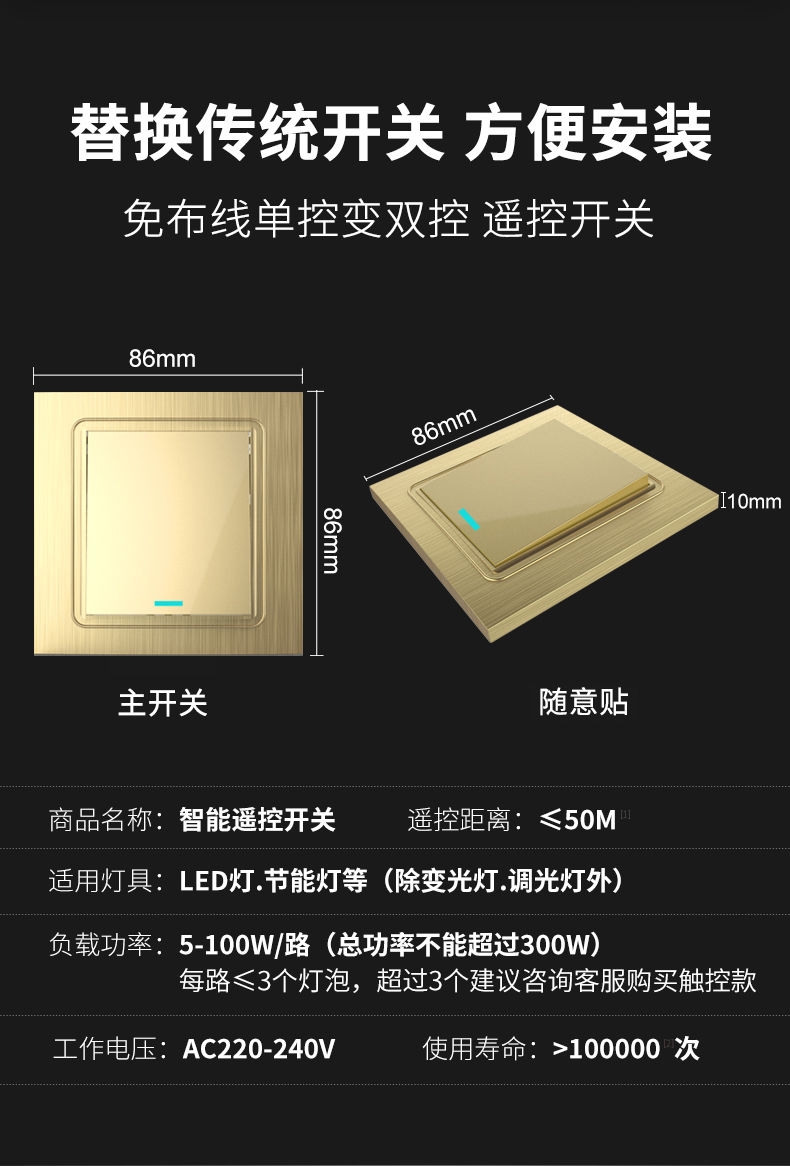 商品名稱:遙控開關(guān)面板無線雙控開關(guān)免布線智能雙控?zé)艟?20v單路86型隨意貼