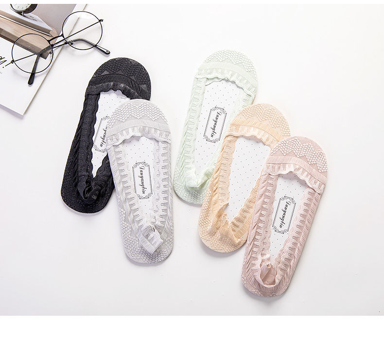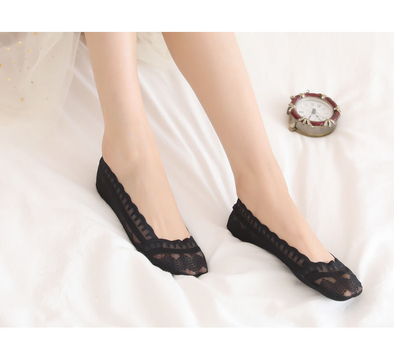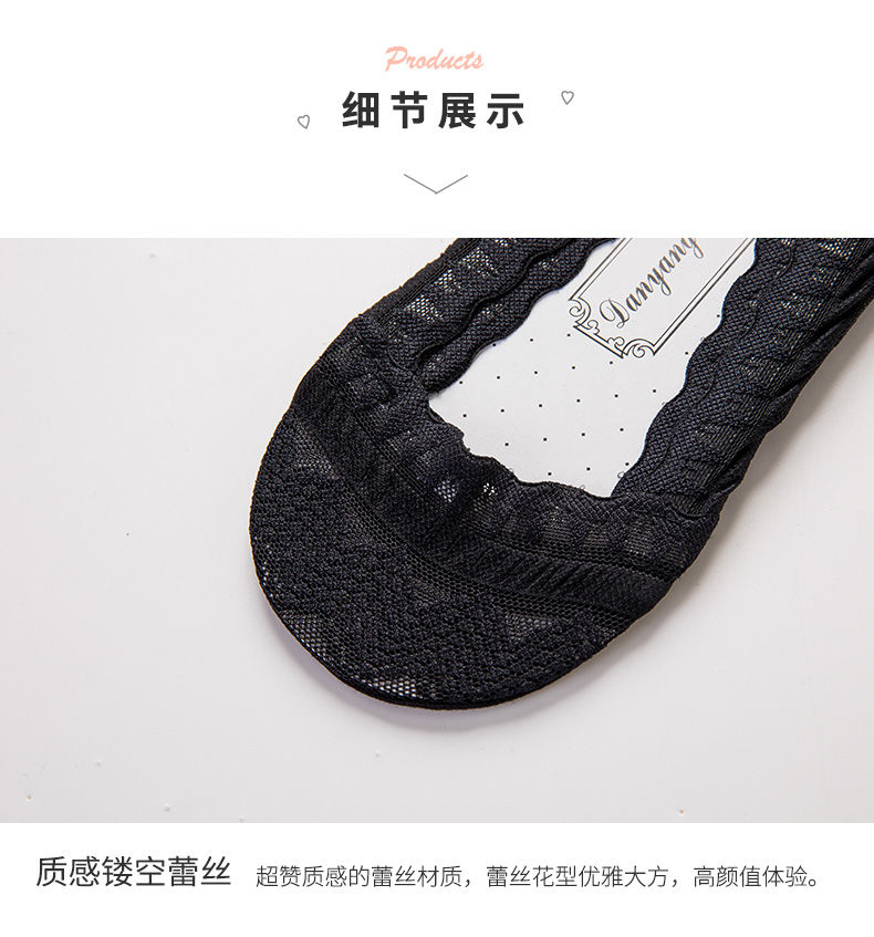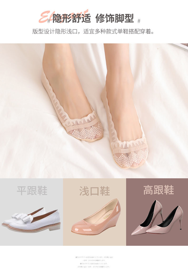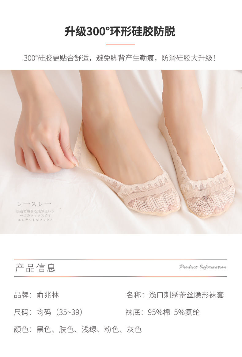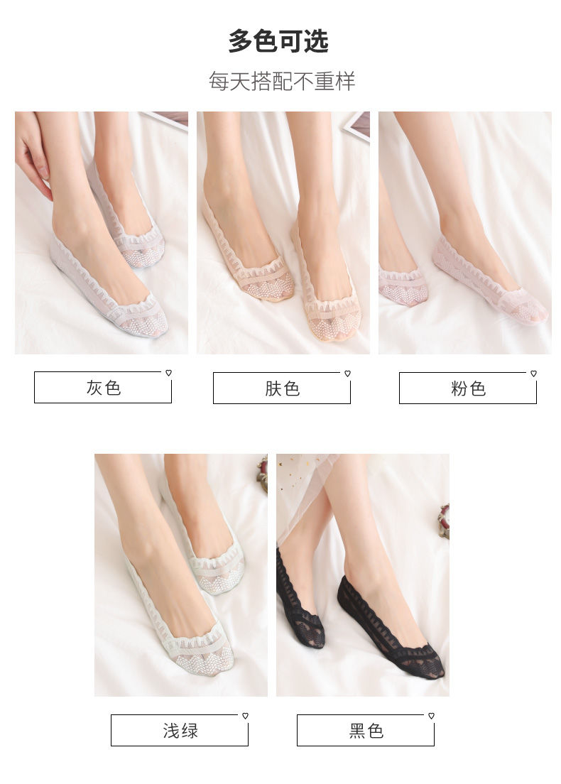 商品名稱:襪子女夏季薄款淺口船襪隱形襪蕾絲純色棉底冰絲硅膠防滑襪