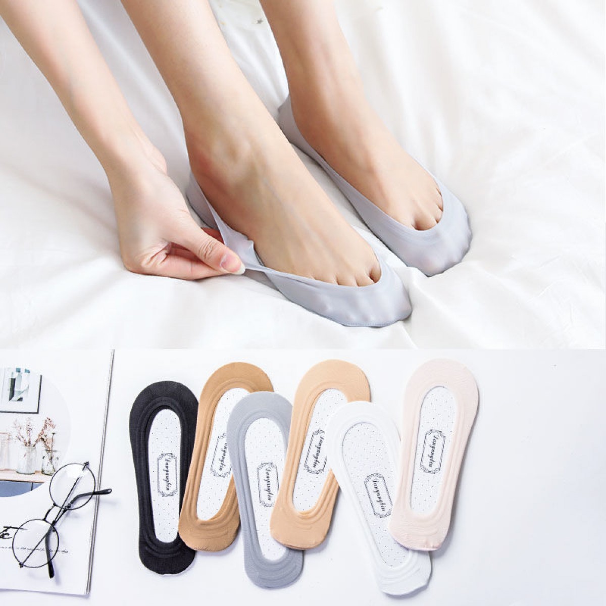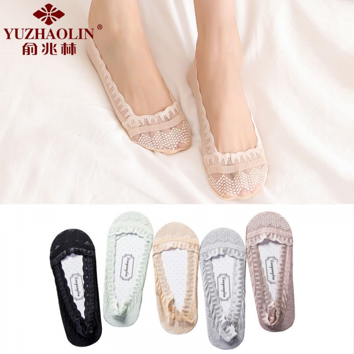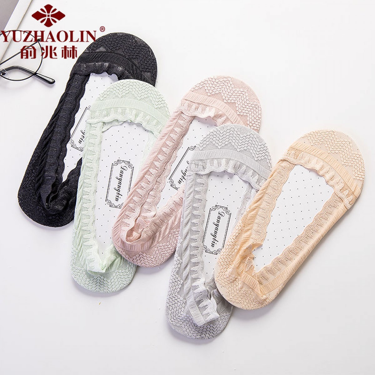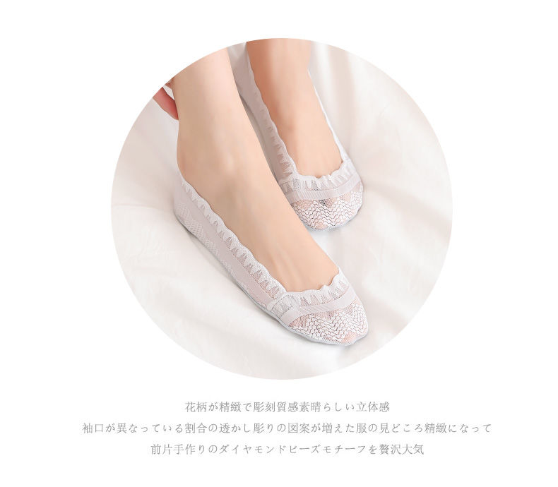 商品名稱:襪子女夏季薄款淺口船襪隱形襪蕾絲純色棉底冰絲硅膠防滑襪