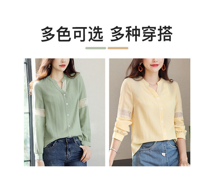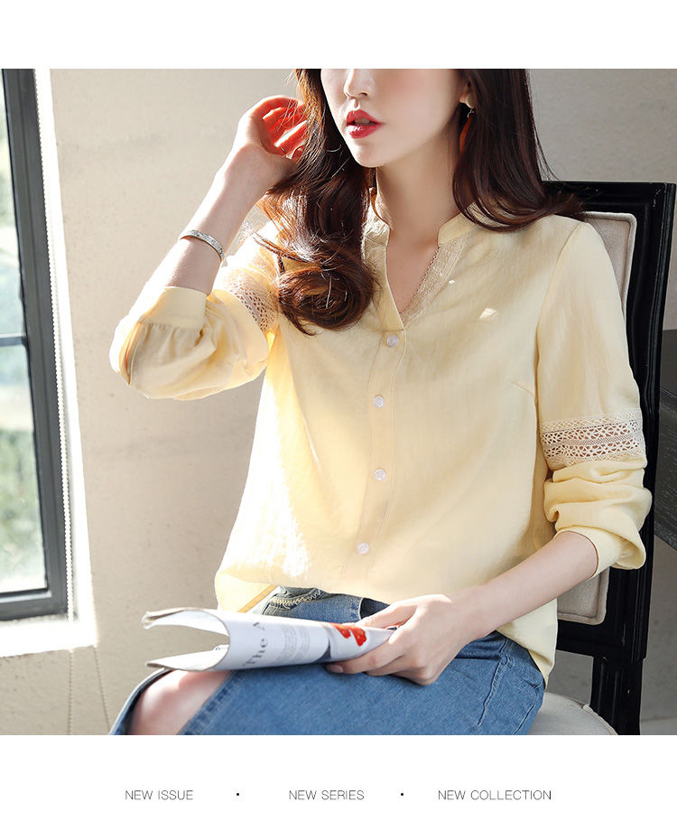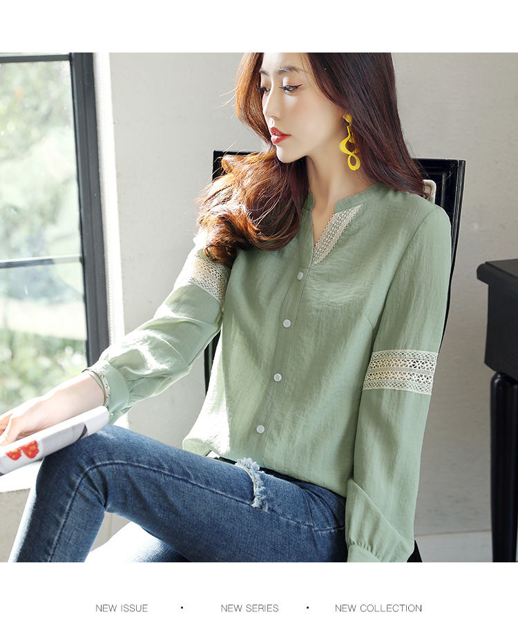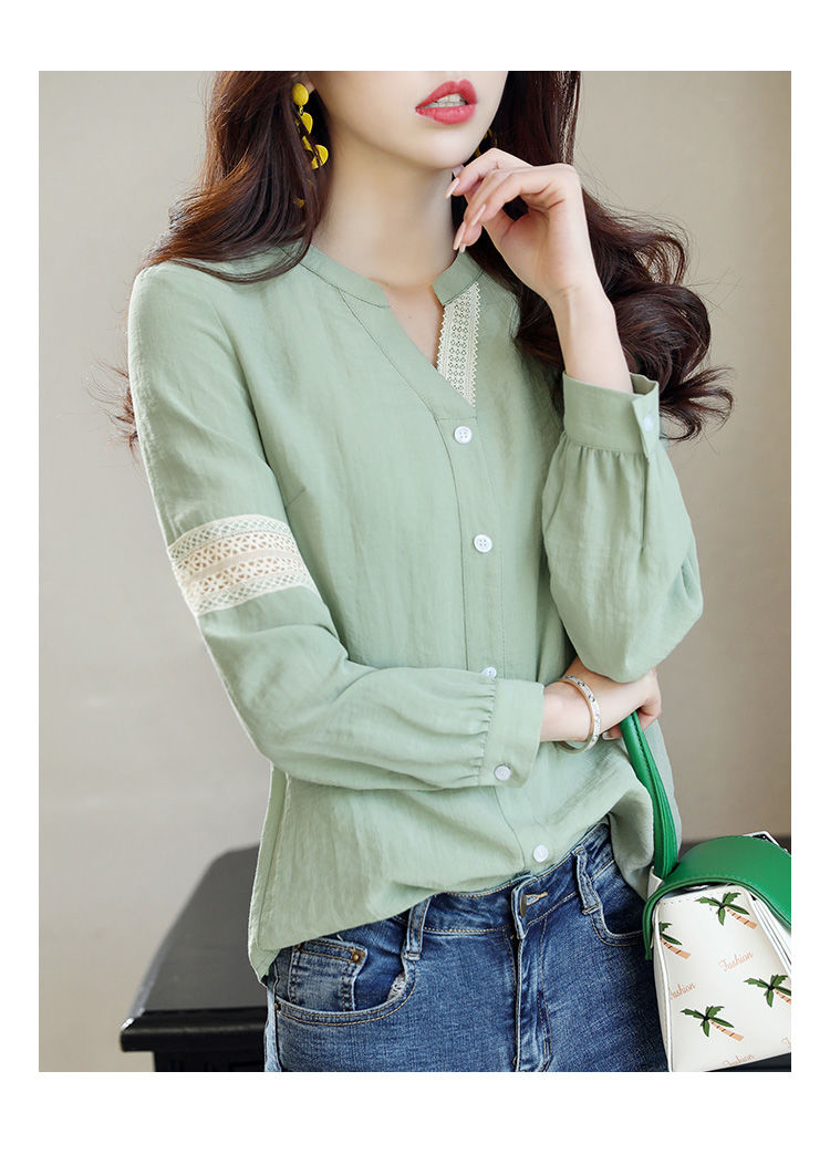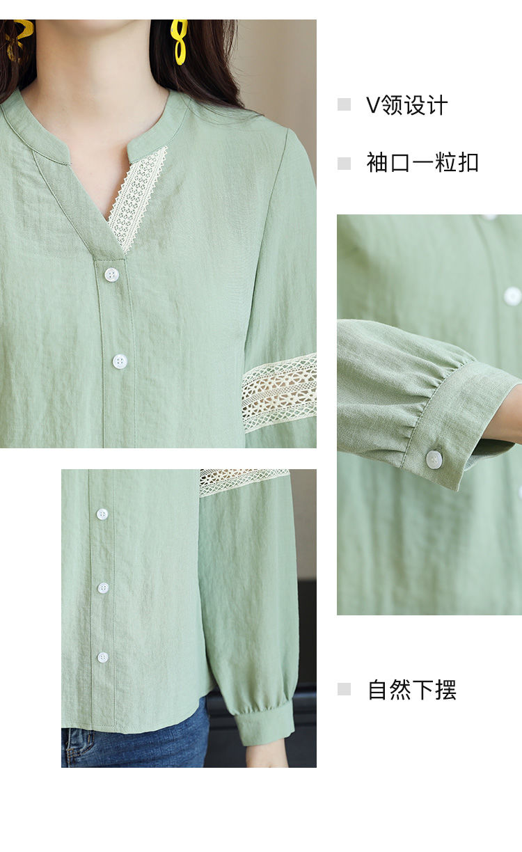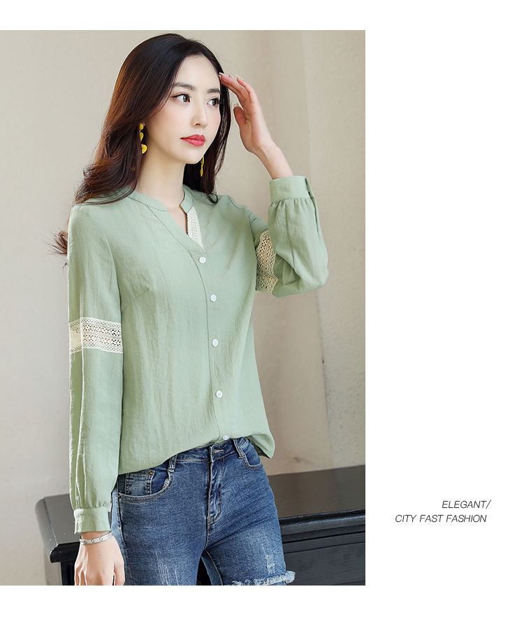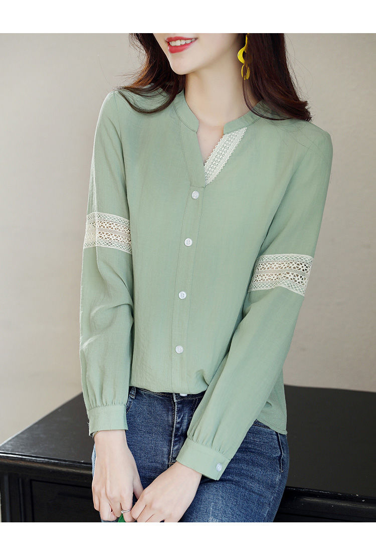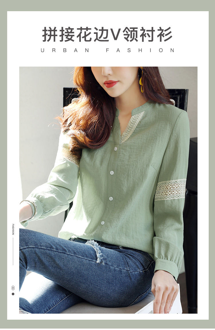 商品名稱:2020年春季新品女款韓版時(shí)尚百搭甜美拼接花邊V領(lǐng)襯衫