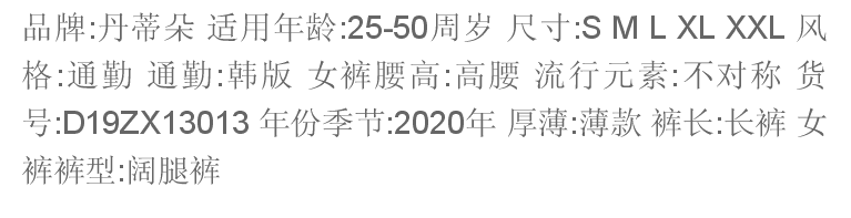 商品名稱:2020闊腿褲女春夏高腰新款顯瘦休閑直筒墜感長褲子女學(xué)生韓版寬松