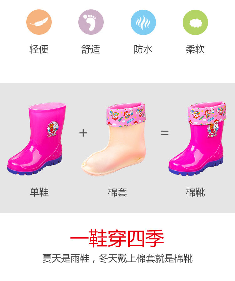 商品名稱:2-10歲兒童雨鞋男女水鞋加絨加棉卡通膠靴水靴雨靴防滑膠鞋雪地靴