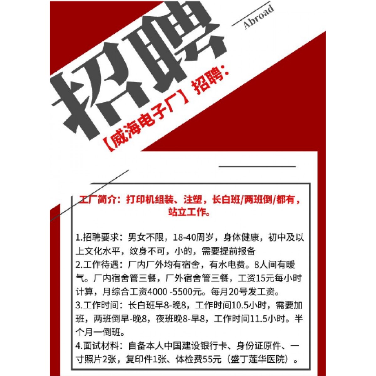 1?:工廠簡(jiǎn)介:打印機(jī)組裝、注塑,長(zhǎng)白班/兩班倒/都有,站立工作。