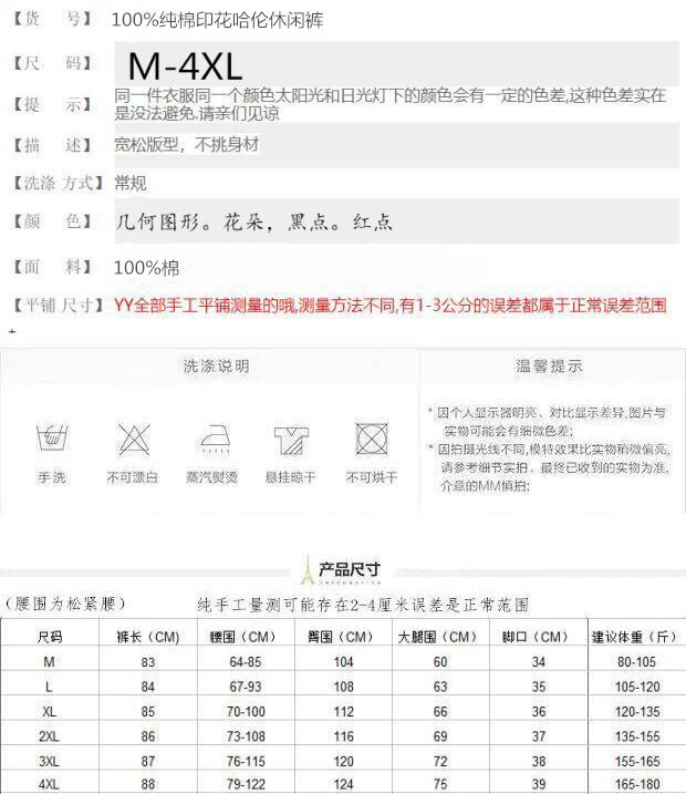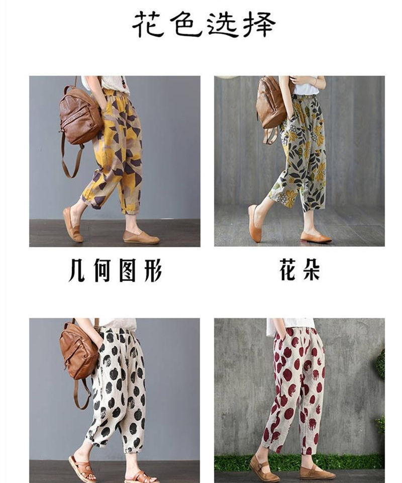 商品名稱:【100%】棉【好質(zhì)量】文藝哈倫褲2019新款夏季女褲印花九分休閑褲