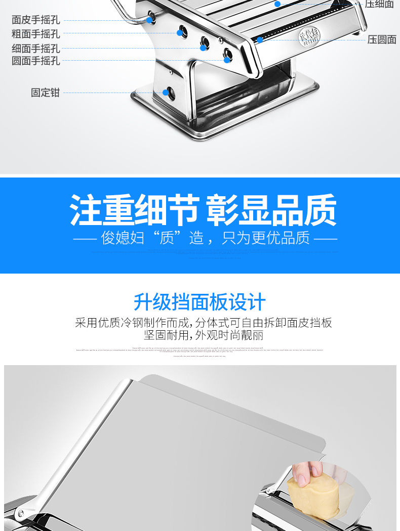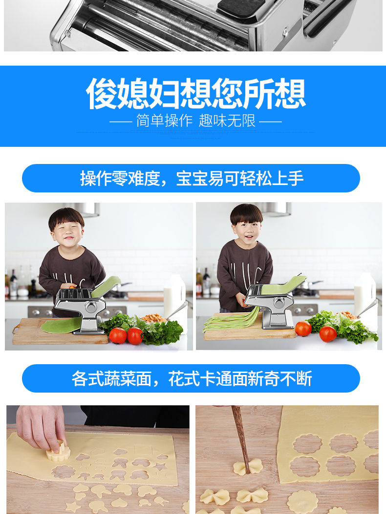 商品名稱(chēng):家用面條機(jī)小型多功能壓面機(jī)手動(dòng)不銹鋼搟面機(jī)餃子餛飩皮機(jī)