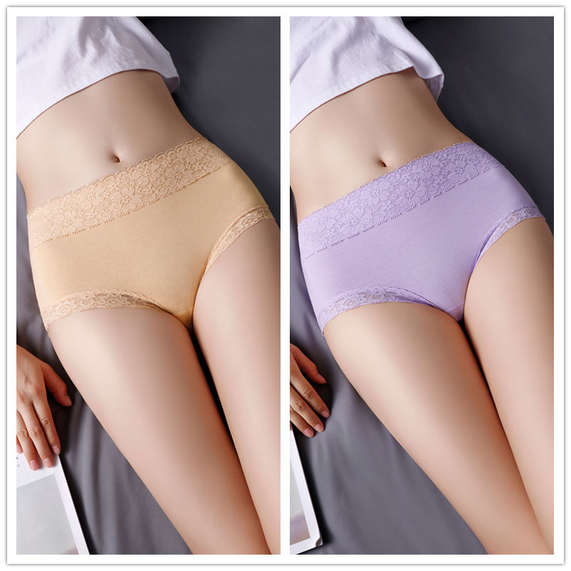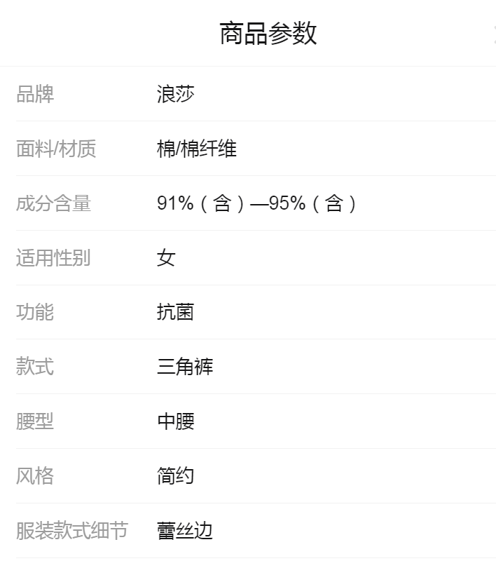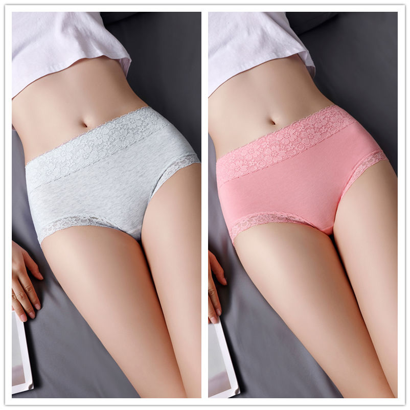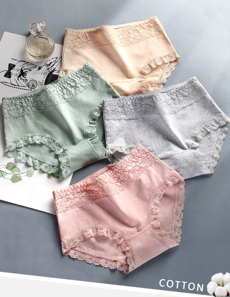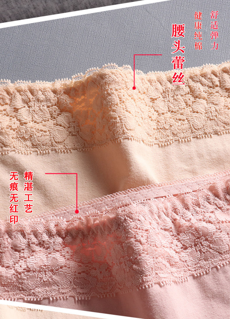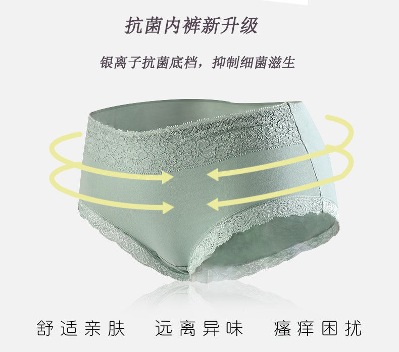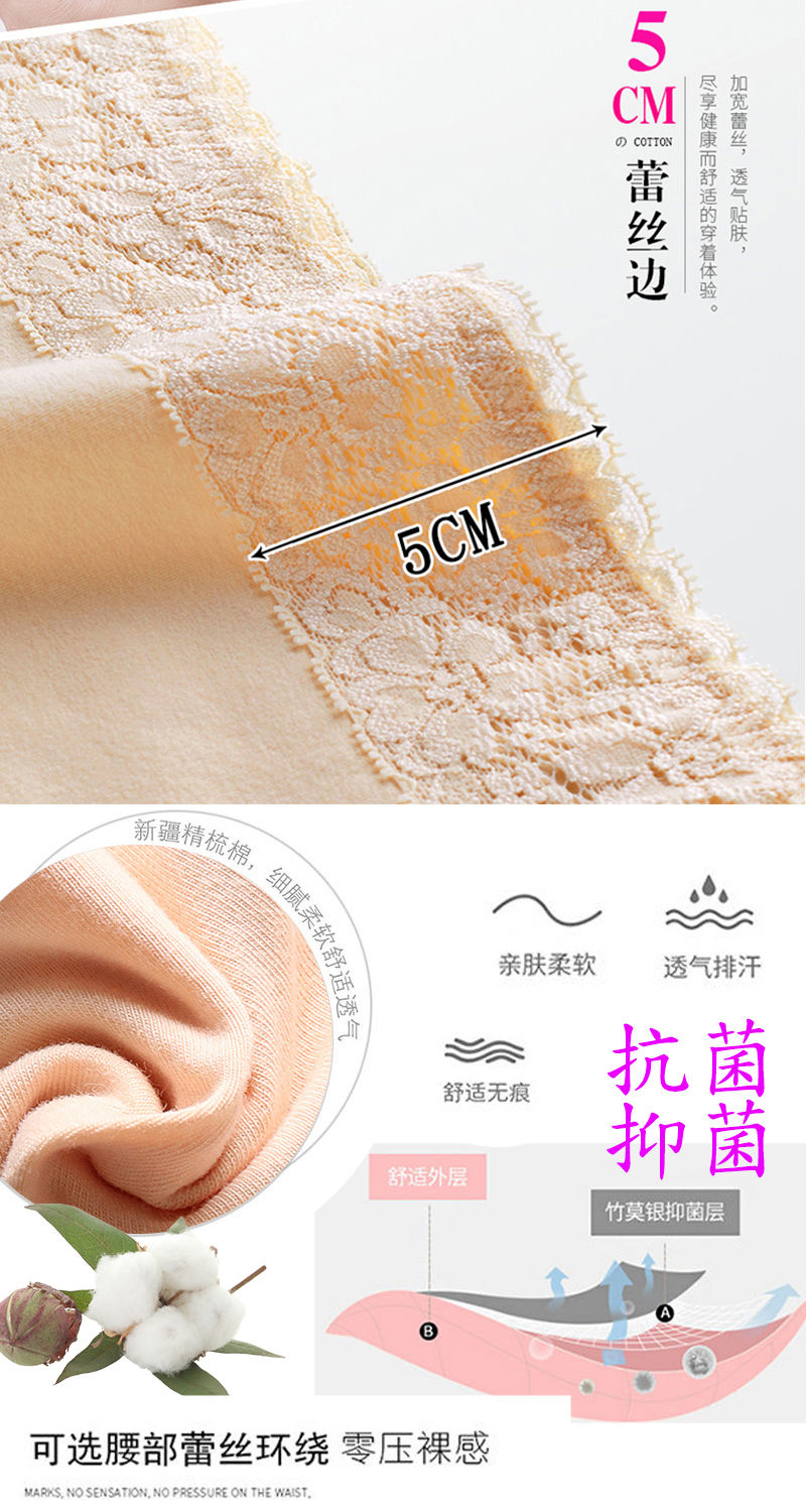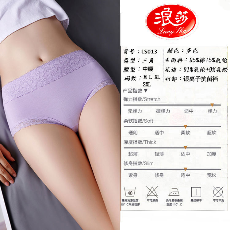 商品名稱:浪莎 4條 95%棉 中腰銀離子抗菌內(nèi)褲女蕾絲純色棉質(zhì)女士?jī)?nèi)褲
