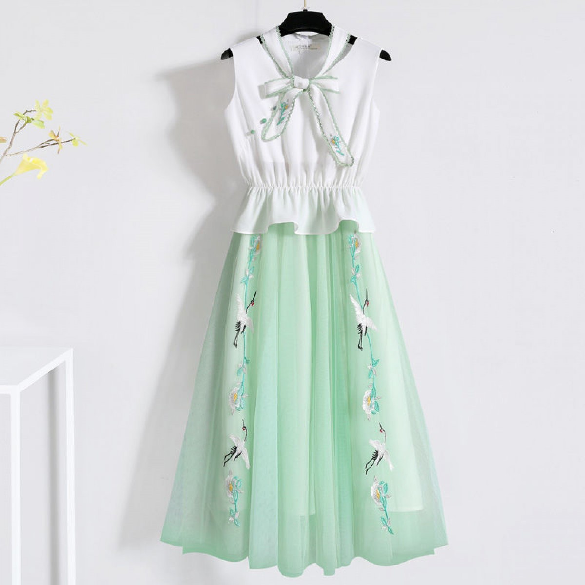 商品名稱:兩件套200斤胖妹妹夏裝新款上衣半身裙大碼女裝古裝衣服套裝女