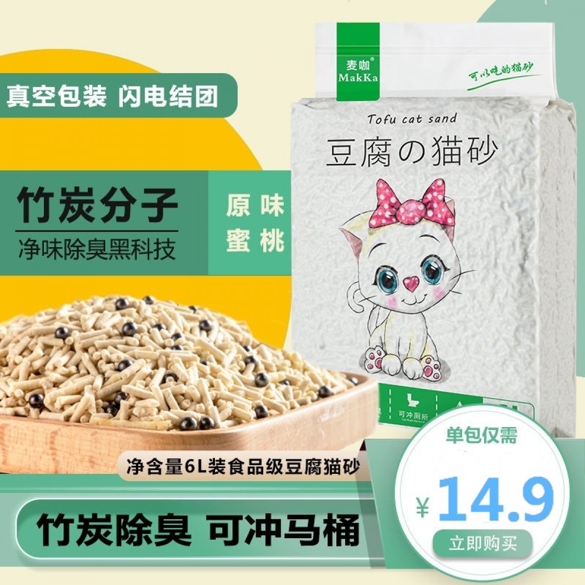 豆腐貓砂除臭貓沙6L豆腐砂豆腐渣無塵大顆粒結(jié)團原味
