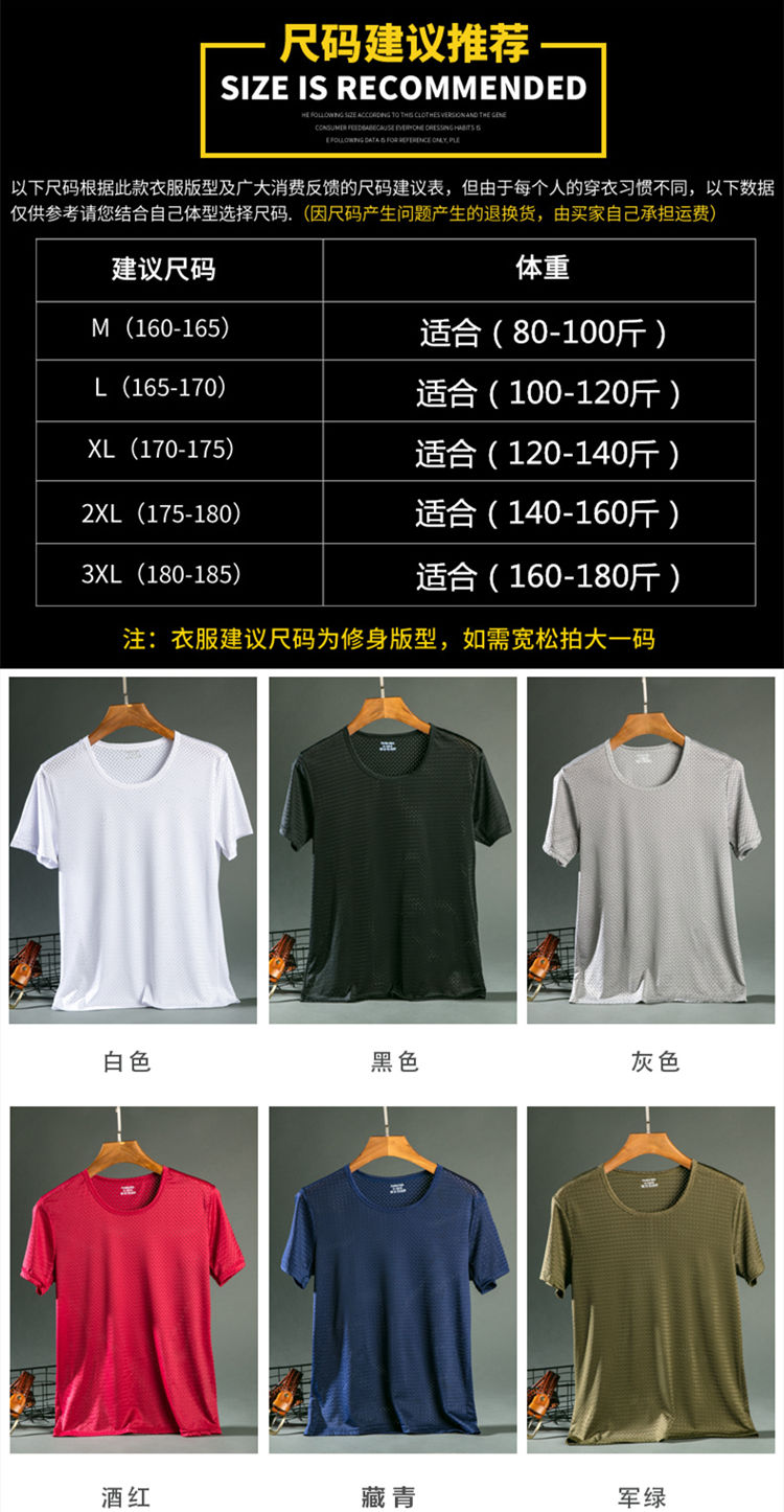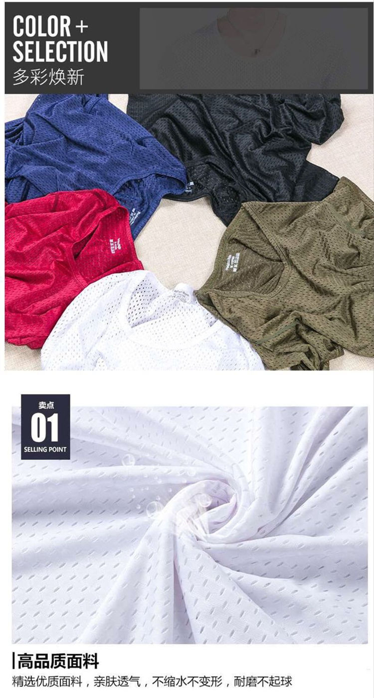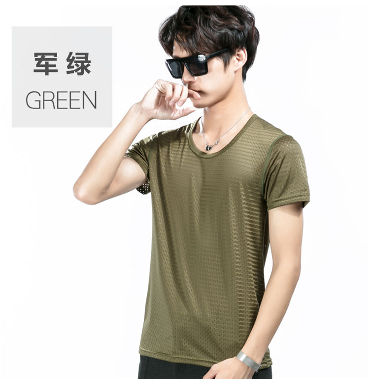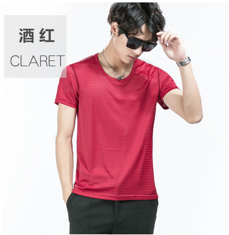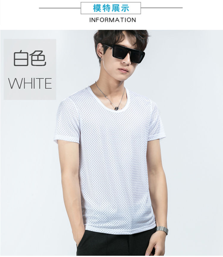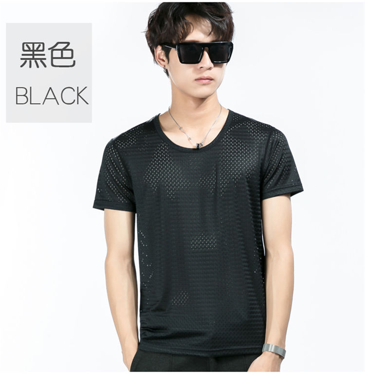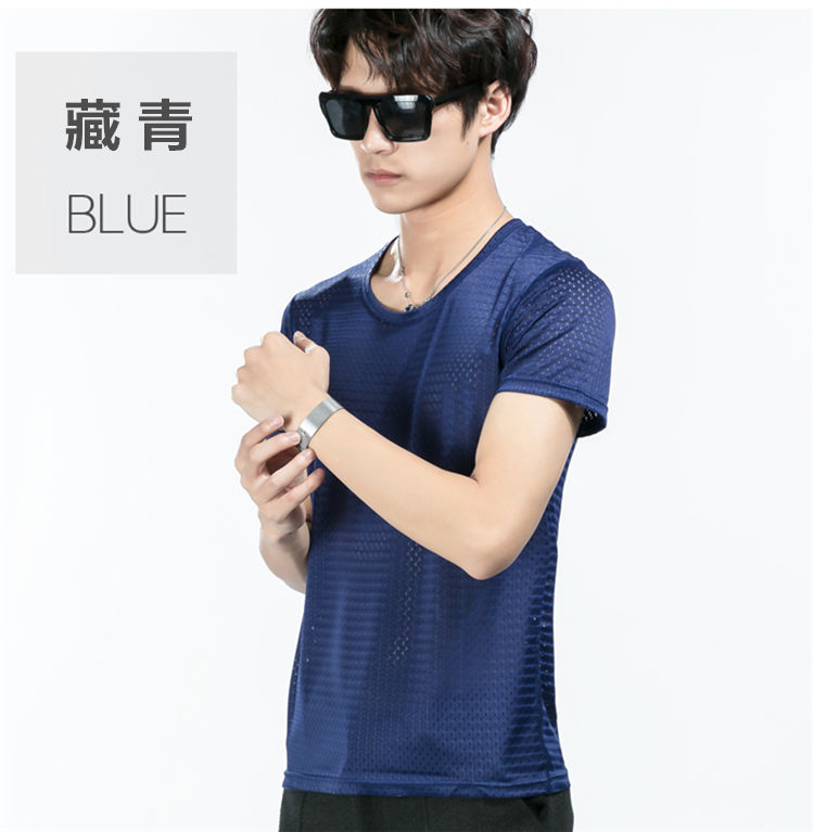 商品名稱:夏季冰絲網眼短袖男T薄款鏤空透氣速干t恤韓版修身運動上衣
