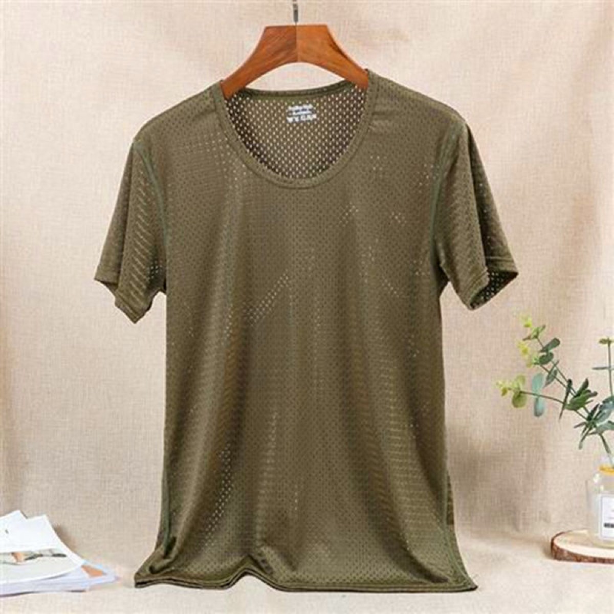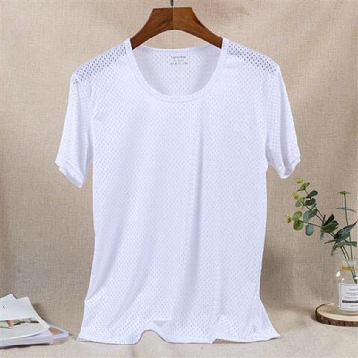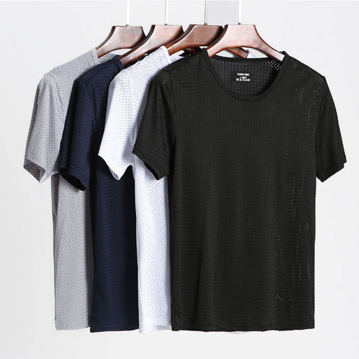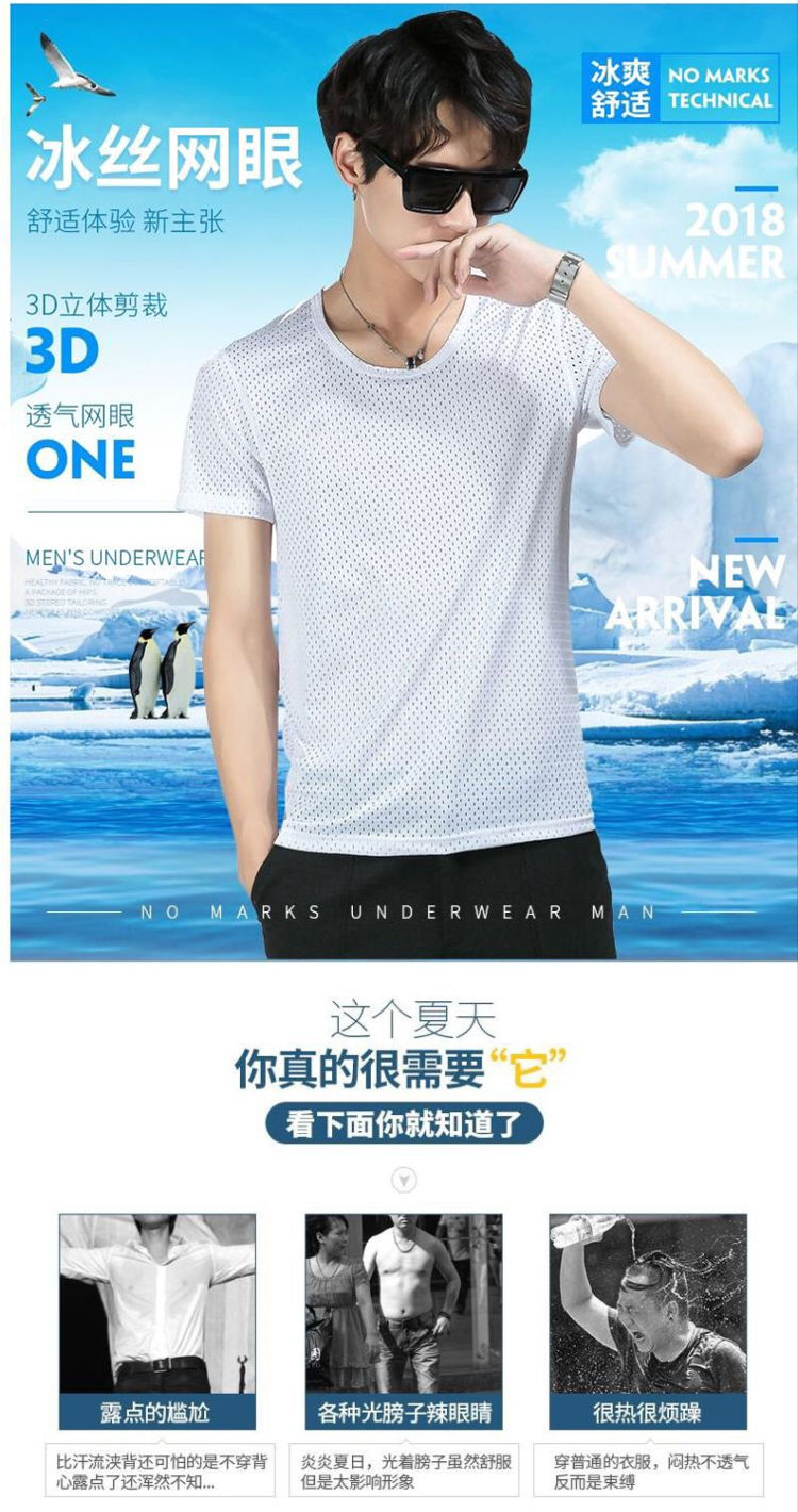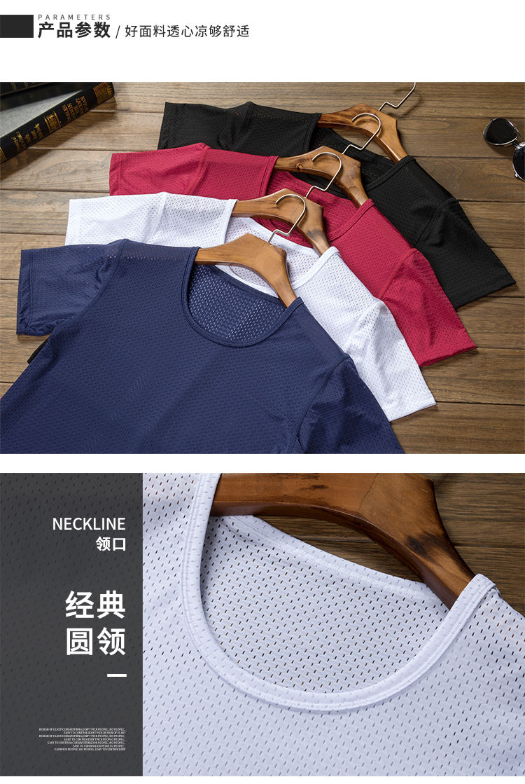 商品名稱:夏季冰絲網眼短袖男T薄款鏤空透氣速干t恤韓版修身運動上衣