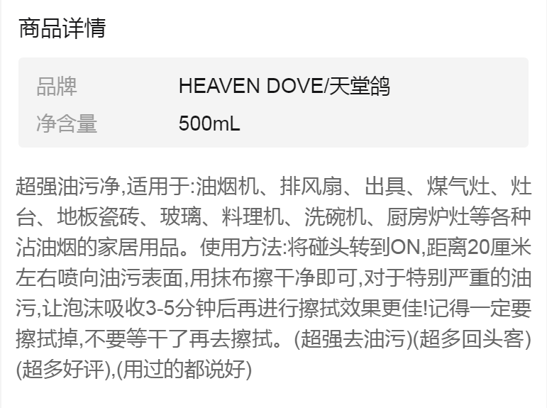 商品名稱:【強(qiáng)力去污】油煙機(jī)清洗劑去油污清潔劑廚房神器多功能泡沫清潔劑