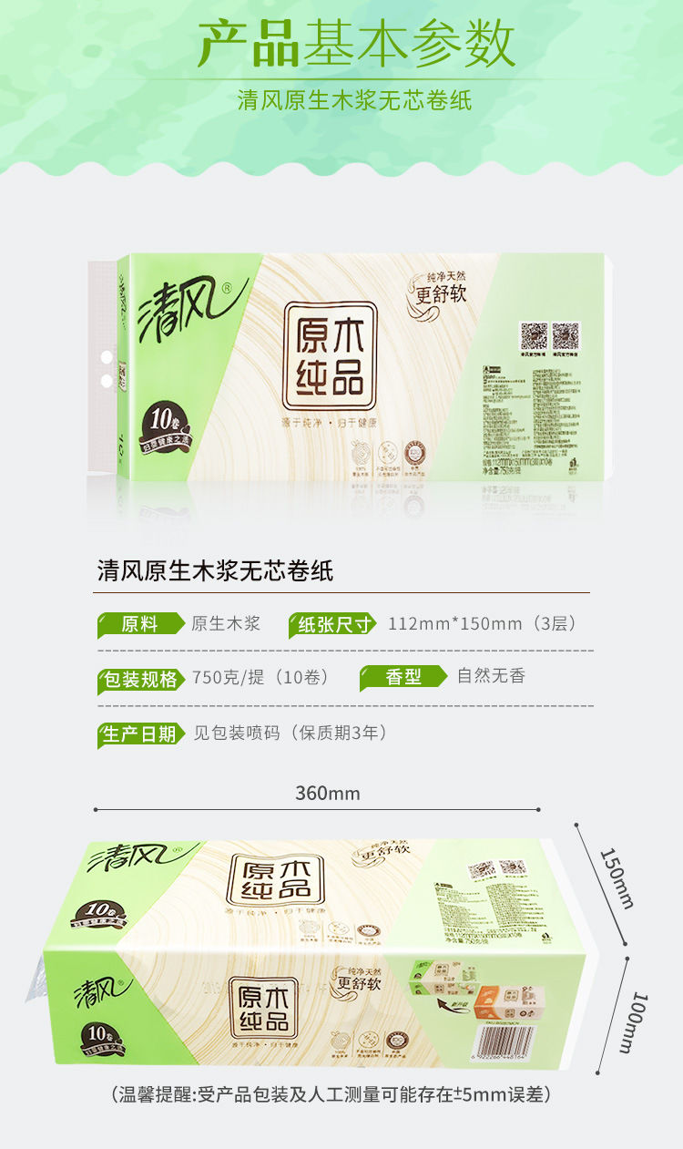 商品名稱:清風(fēng)無(wú)芯卷紙?jiān)?0卷實(shí)心衛(wèi)生紙批發(fā)家用卷筒紙家用廁紙紙巾